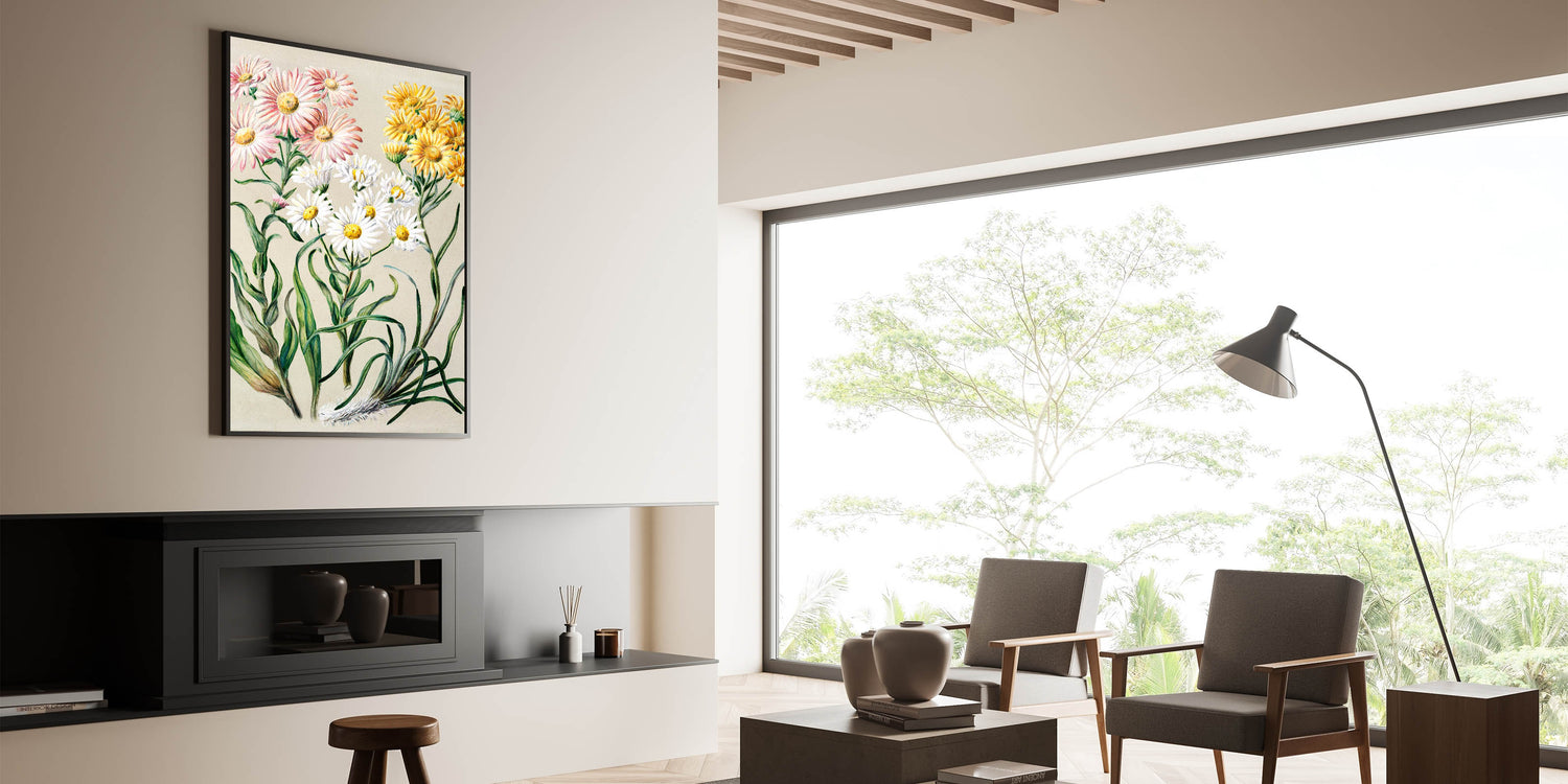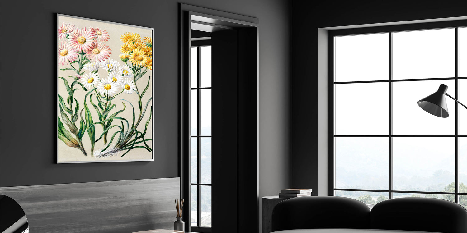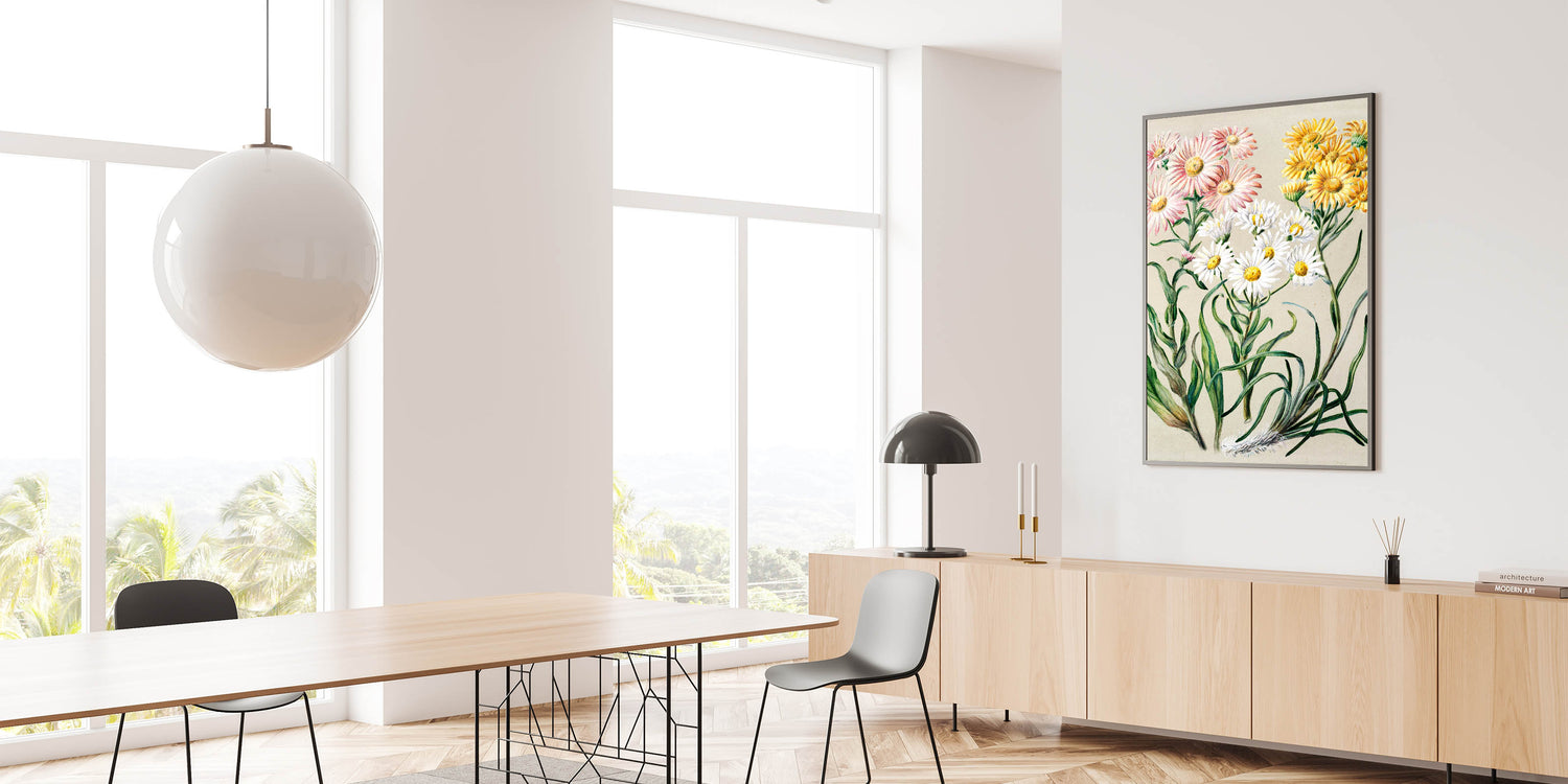 Enhance your space with this captivating Realism art print, featuring delicate flowers meticulously illustrated in soft hues of pink, yellow, and white. This piece is a beautiful example of fine art realism, showcasing the elegance and detail of classical realism painting. Ideal for those seeking a refined touch to their living spaces, this artwork is available in various materials to suit any decor style.