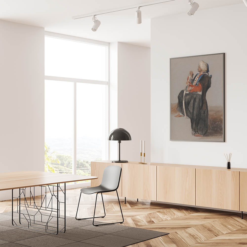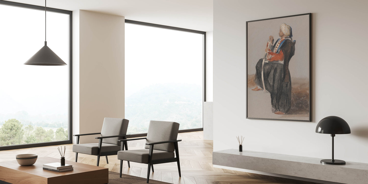 Introduce timeless elegance to your decor with this Realism art print, showcasing a detailed portrayal of a Middle Eastern figure in traditional attire. The artist's skilled use of color and shading brings a lifelike quality to this piece, making it a striking addition to any room. This artwork celebrates the beauty of classical realism and is available in a variety of formats to suit your space.