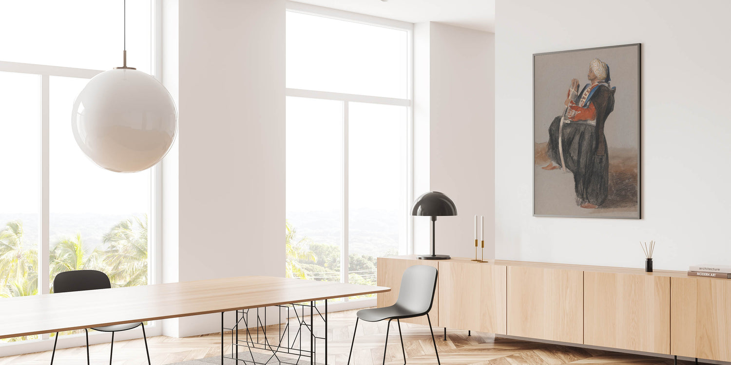 This timeless realism art print is perfect for those who appreciate art that tells a story and brings a touch of history to their space. Its intricate details and subdued colors create an atmosphere of refinement, making it an ideal piece for elegant interiors.
