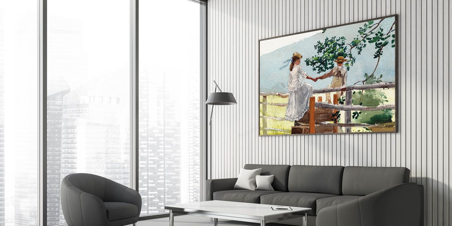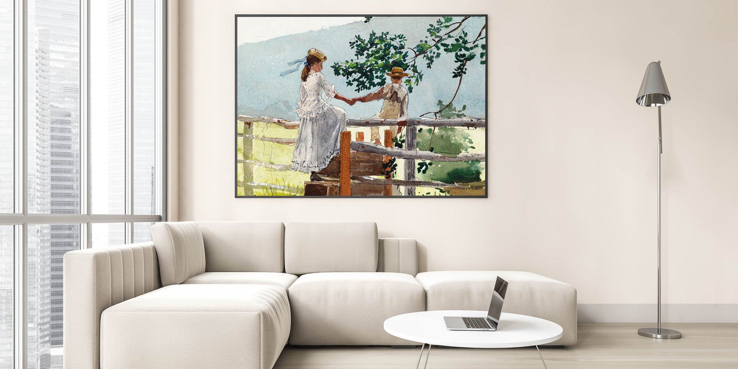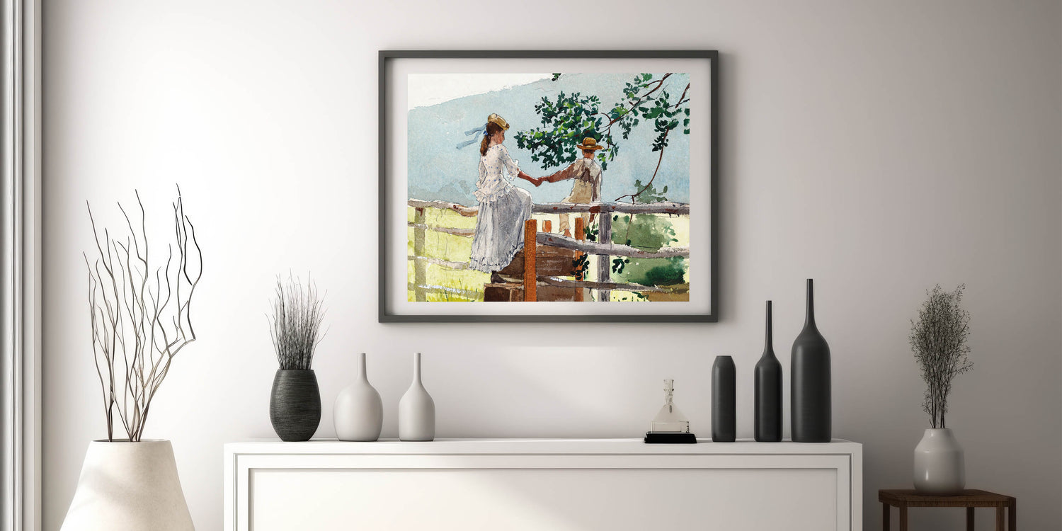 Bring a touch of nostalgia to your decor with this beautifully crafted Realism art print. Featuring two children sharing a quiet moment on a fence stile, this piece captures the innocence and simplicity of childhood in a serene countryside setting. With delicate brushwork and a soft color palette, this artwork is a timeless addition to any room, perfect for those who appreciate classical realism.