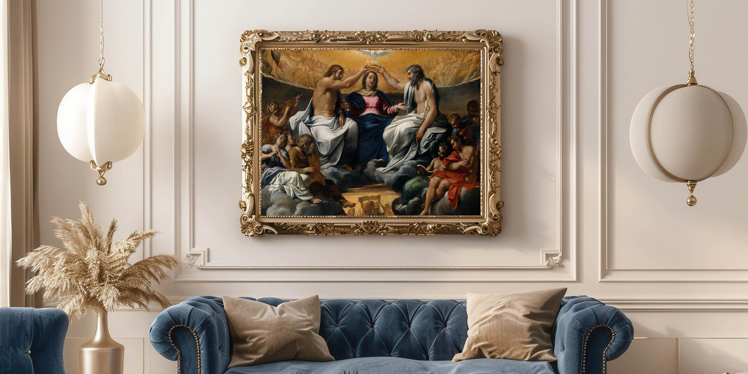 Annibale Carracci’s The Coronation of the Virgin is a masterful portrayal of celestial grace and divine beauty, embodying the essence of Renaissance art. This iconic painting captures the Virgin Mary being crowned by the Holy Trinity, surrounded by an ethereal choir of angels and saints. Carracci's use of vibrant colors, dynamic composition, and luminous light brings this divine scene to life.
