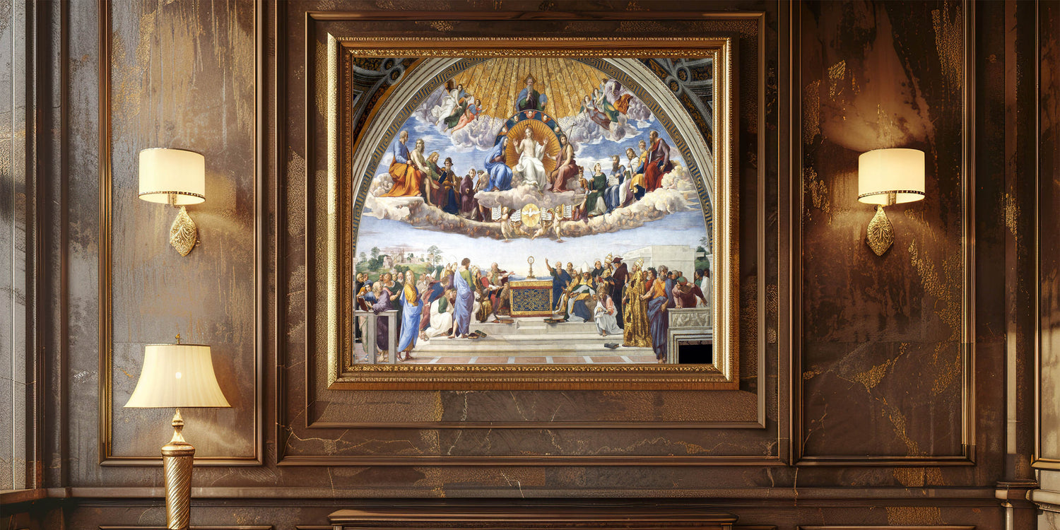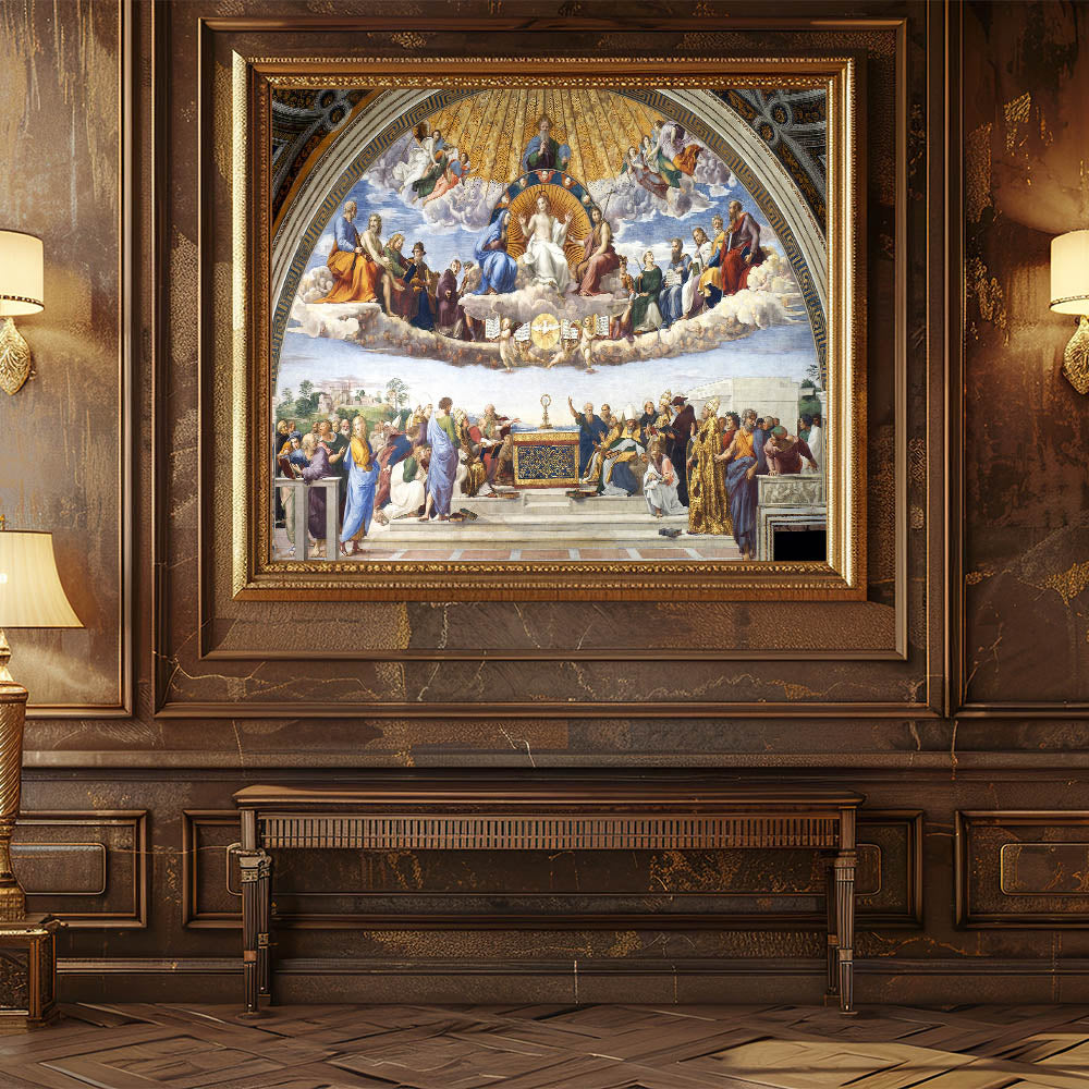 Elevate your decor with the magnificence of Renaissance art. Whether as a focal point in a living room or a reflective piece in a sacred space, Disputation of the Holy Sacrament brings an unmatched aura of spiritual and artistic significance.