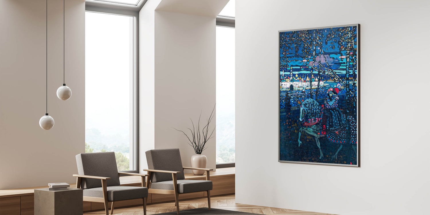Bring home the enigmatic allure of Kandinsky’s Riding Couple, a timeless piece that resonates with abstract beauty and emotional depth.