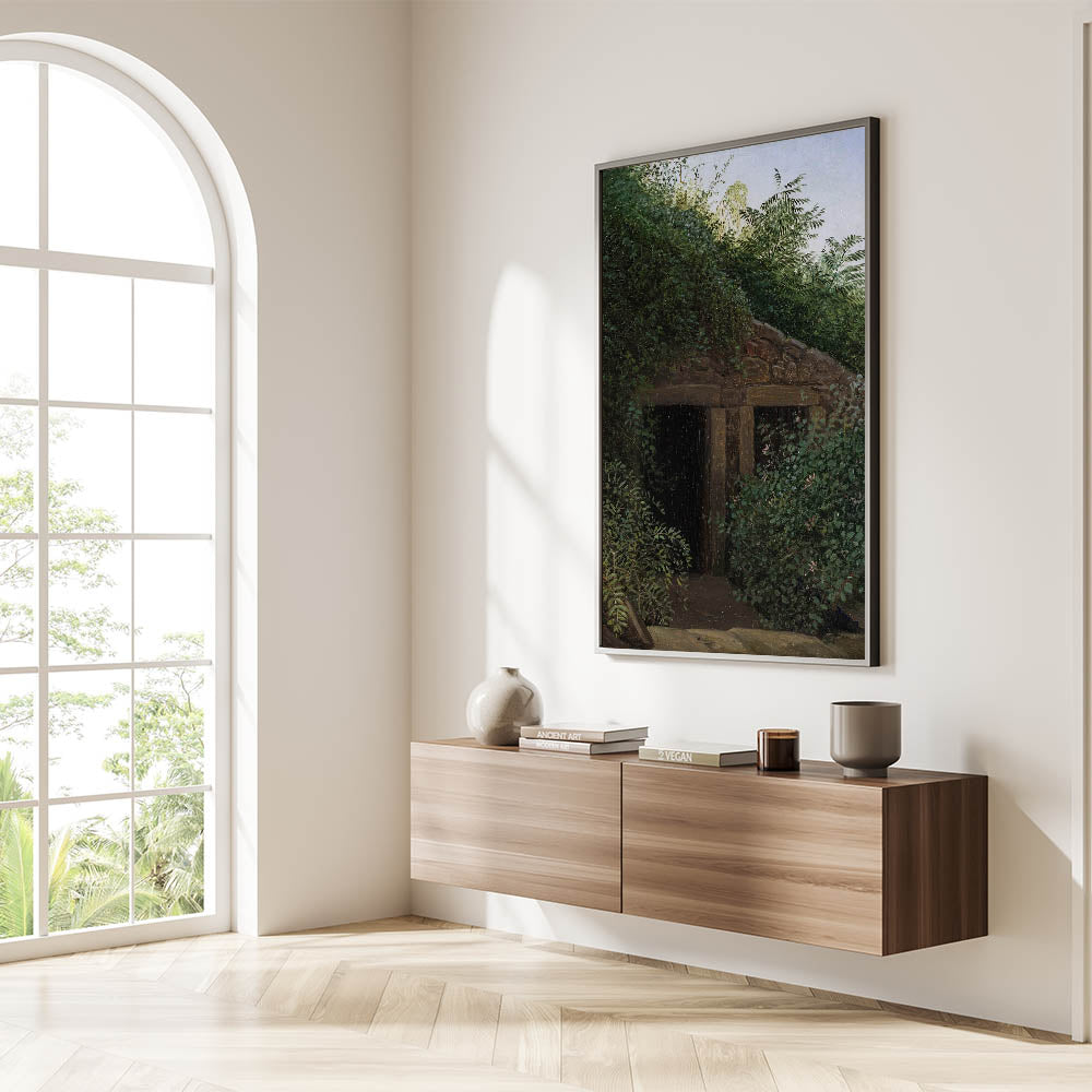 Step into the mysterious beauty of Romanticism style wall art with "An Overgrown Mineshaft" by Carl Gustav Carus. This evocative painting highlights the Romantic era's fascination with untamed nature and hidden stories, blending lush greenery with a weathered, abandoned mineshaft. The interplay of light and shadow captures an emotional and poetic connection to the natural world, making this piece a quintessential example of classic art of the Romantic era.