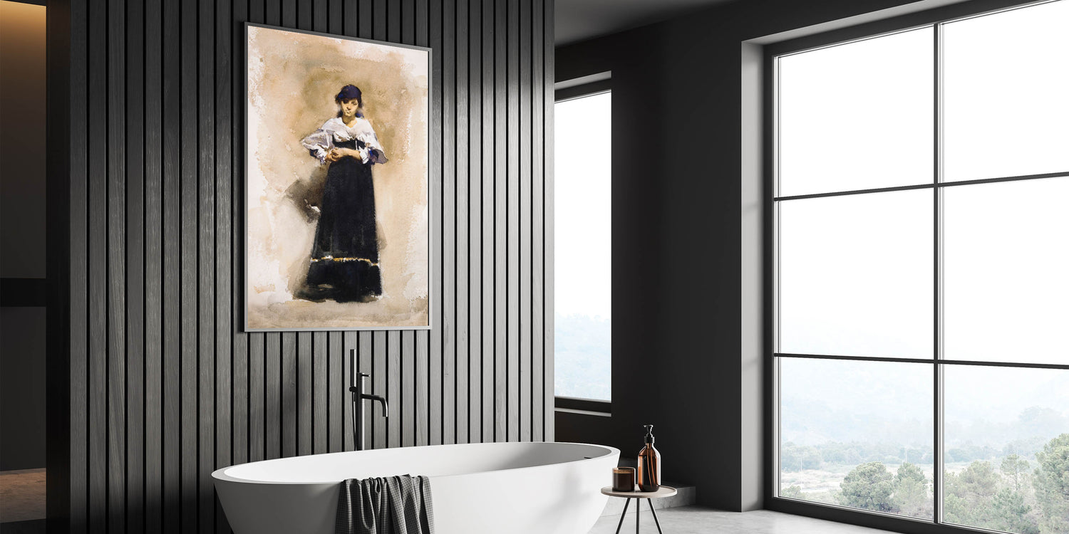 Discover the grace and mystery of "Young Woman with a Black Skirt" by John Singer Sargent, a subtle yet evocative portrait that embodies the spirit of Romanticism. Painted with delicate watercolor techniques, this piece captures the quiet introspection of its subject, blending soft textures with a refined color palette. The muted tones and elegant composition make this artwork a stunning addition to romantic art for home decor.