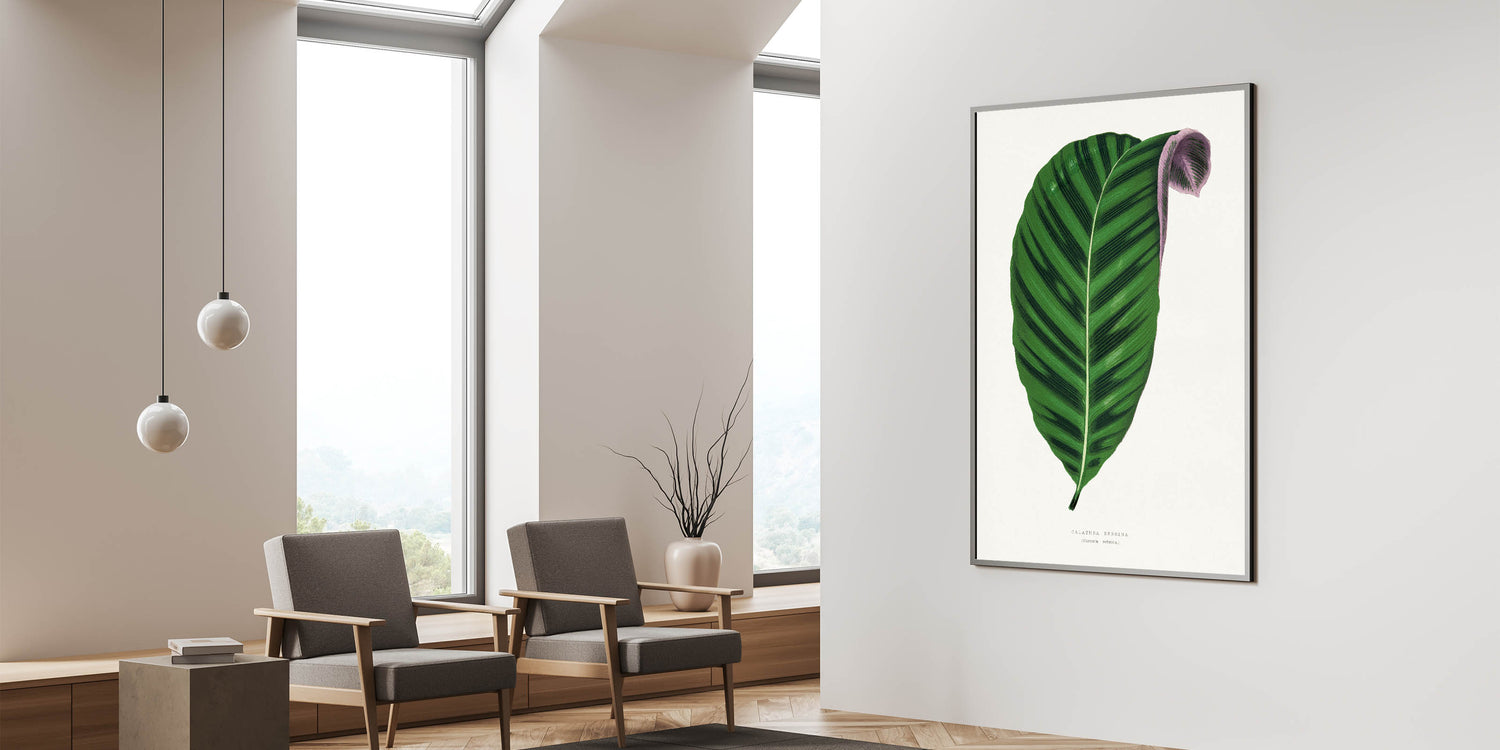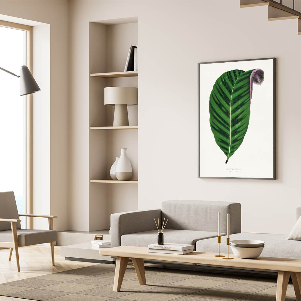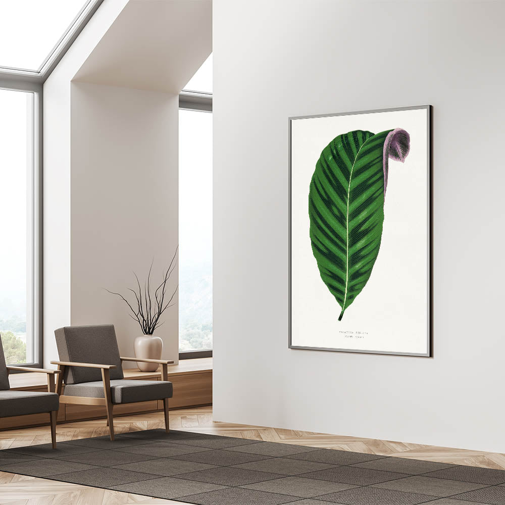 Celebrate the beauty of nature with this Romantic Calathea Zebrina Leaf artwork, inspired by the elegance of the Romanticism style wall art. This detailed botanical illustration highlights the rich, green hues and delicate textures of the Calathea Zebrina leaf, emphasizing the emotional connection to natural elements that defines the classic art of the Romantic era.