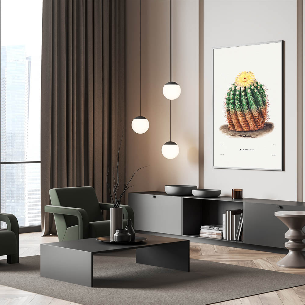 This historic and cultural wall décor is ideal for plant lovers and art enthusiasts alike. The Golden Barrel Cactus illustration brings a fresh and uplifting aesthetic to your interior while showcasing the timeless elegance of Romanticism.