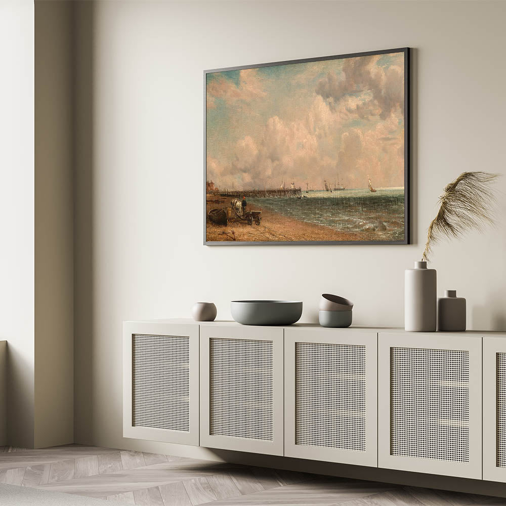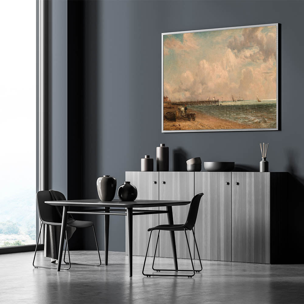 Experience the charm of England’s maritime heritage with "Yarmouth Jetty" (1822) by John Constable, a stunning Romanticism style wall art masterpiece. This seascape painting captures the serene beauty of a bustling jetty, where fishing boats, horse-drawn carts, and lively figures converge under a sky filled with dynamic clouds. Constable's masterful brushwork and attention to atmospheric detail embody the classic art of the Romantic era, bringing nature and humanity’s connection to life.