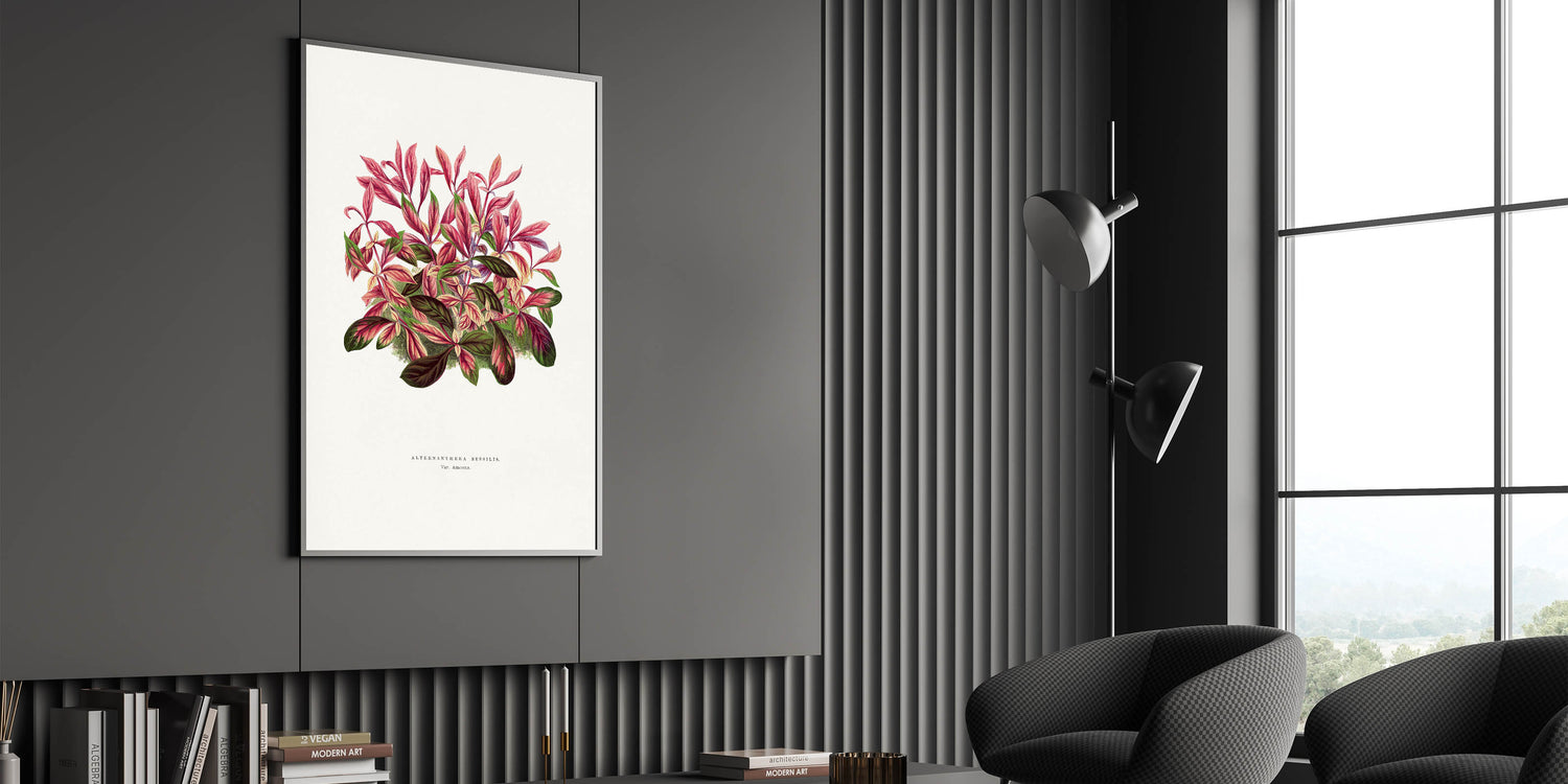 Transform your living space with this vibrant Romanticism style wall art, featuring a detailed illustration of the Alternanthera Sessilis Var. Amoena by Alexander Francis Lydon. This masterpiece combines the scientific precision of botanical art with the emotional depth of the classic art of the Romantic era, offering a celebration of nature's intricate beauty. The bold interplay of greens and reds creates a stunning visual contrast, perfect for enhancing any room.