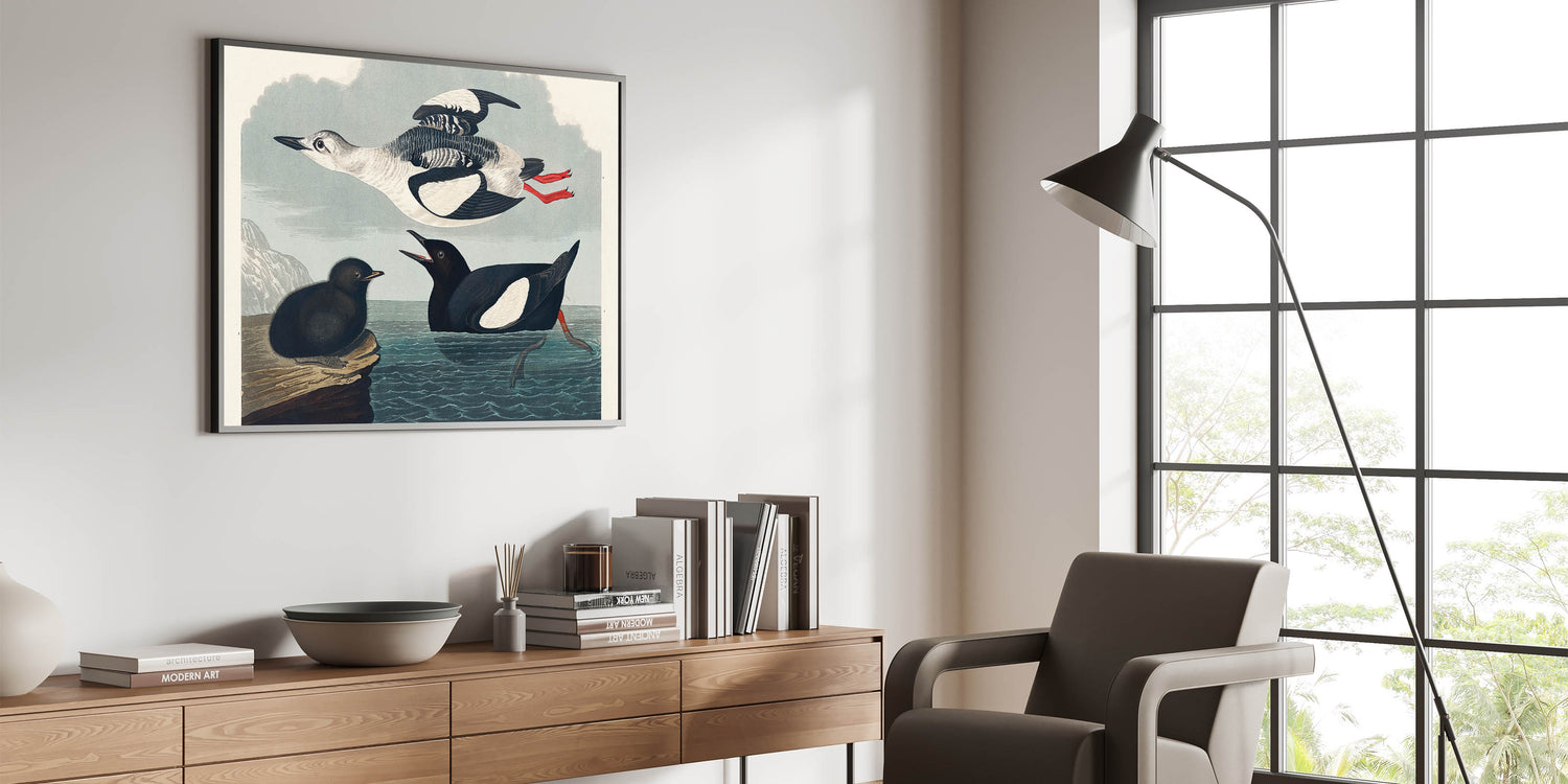 Add a touch of sophistication to your decor with Audubon’s "Black Guillemot." This artwork embodies the Romantic era’s appreciation for natural beauty and artistic detail, making it an ideal choice for nature enthusiasts and art collectors alike.