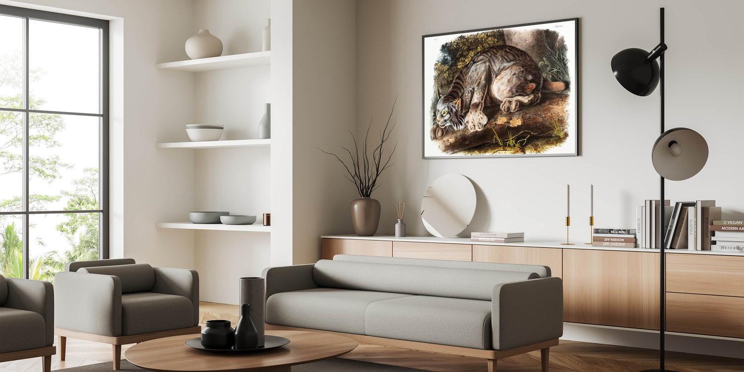 Add a sense of wilderness and artistry to your decor with Audubon’s Canada Lynx. This stunning artwork is a timeless representation of nature’s beauty and makes an exceptional addition to any collection.