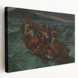 Capture the raw power of Romanticism with Eugène Delacroix's dramatic painting, Christ Asleep During the Tempest. This iconic masterpiece portrays a stormy sea and a boat full of distressed figures, centered on Christ, who remains calm amidst the chaos. Delacroix masterfully contrasts turmoil with serenity, using dynamic brushstrokes and dramatic lighting to evoke intense emotion and reflection on faith and resilience.