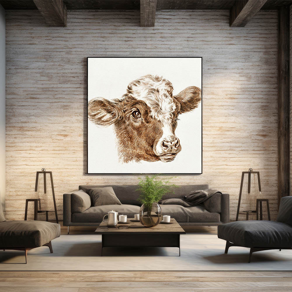 Romanticism Art: Head of a Cow - Historical Animal Sketch Canvas Print