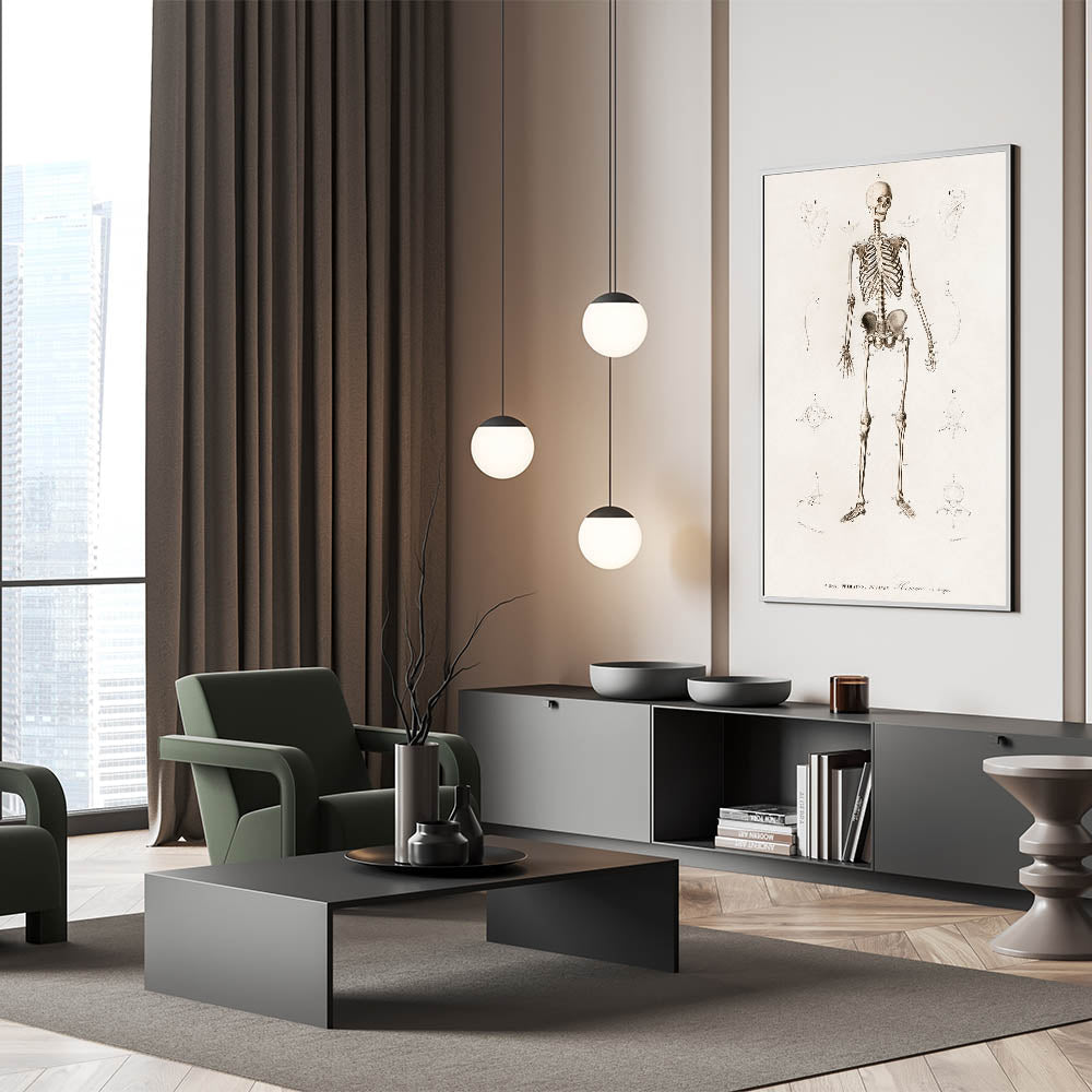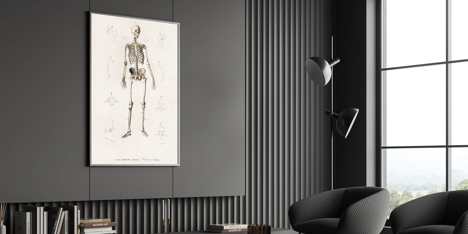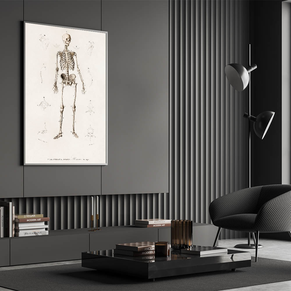 Add a captivating piece of Romanticism style wall art to your collection with this Human Skeleton Illustration, masterfully created by Charles Dessalines D’Orbigny. This scientific and artistic depiction highlights the structure and complexity of the human form, blending anatomical precision with the expressive aesthetics of the classic art of the Romantic era. The clean lines and sepia tones give it a timeless, academic feel, perfect for enhancing modern and classic interiors alike.