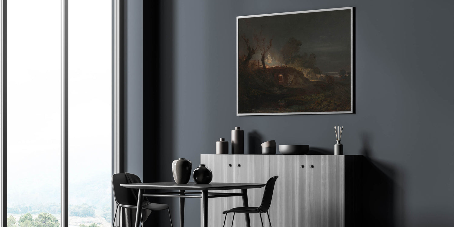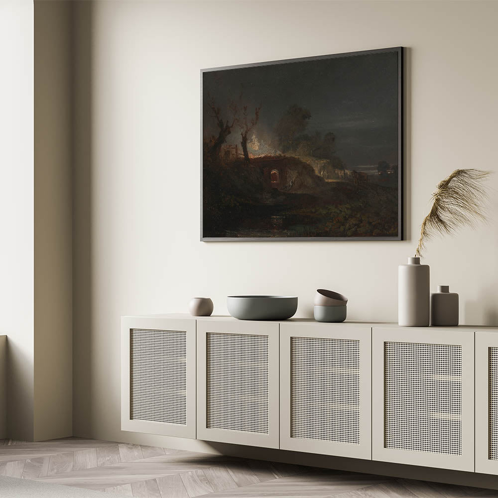 Experience the atmospheric beauty of the Romantic era with J.M.W. Turner's evocative masterpiece, "Limekiln at Coalbrookdale." This hauntingly beautiful landscape captures the industrial glow of lime kilns set against a brooding night sky, blending humanity's impact on nature with the Romantic fascination for light and shadow.