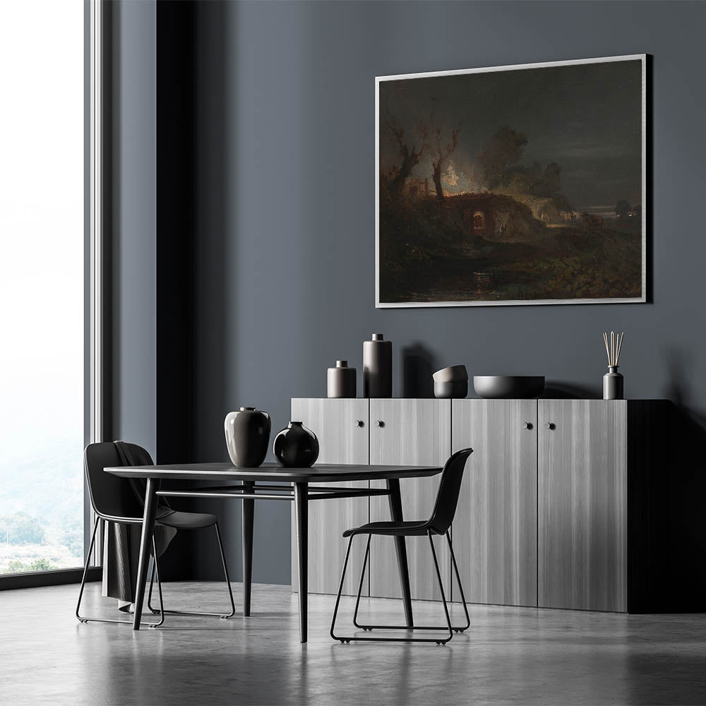Romanticism Art: "Limekiln at Coalbrookdale" Landscape Canvas Print