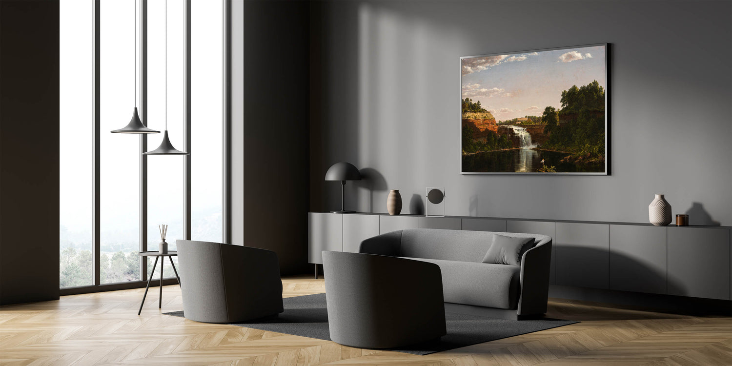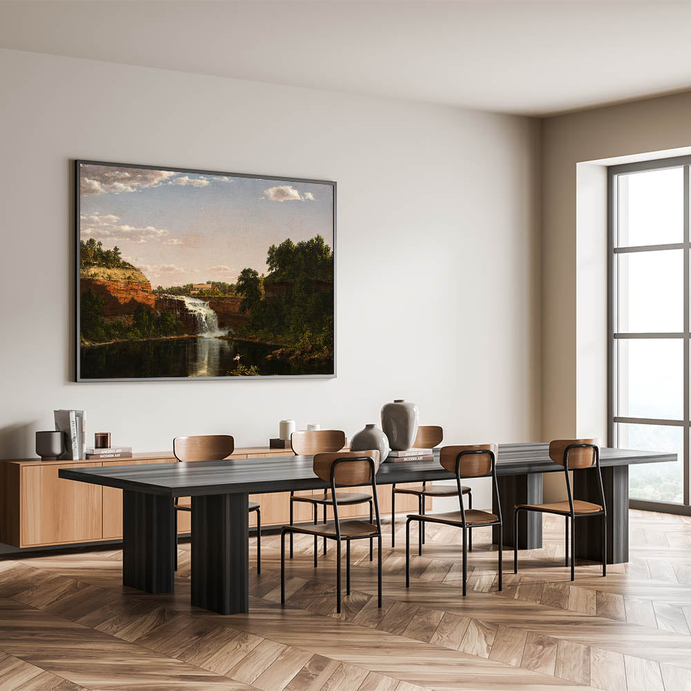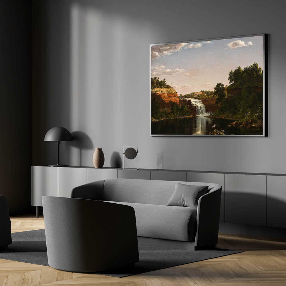 Capture the majestic beauty of nature with Frederic Edwin Church’s Lower Falls, Rochester. This Romanticism masterpiece depicts a breathtaking waterfall surrounded by towering cliffs and lush greenery, perfectly balancing the serenity of nature with its untamed power. The detailed composition, with its vibrant greens, earthy browns, and clear blue sky, reflects Church’s ability to celebrate the grandeur of the natural world.