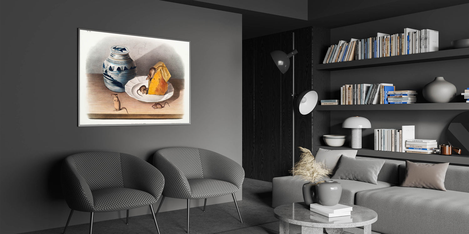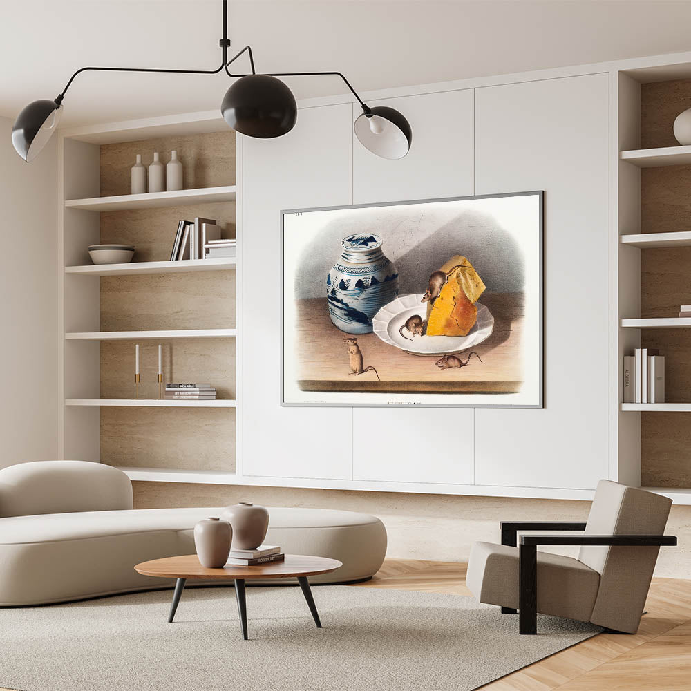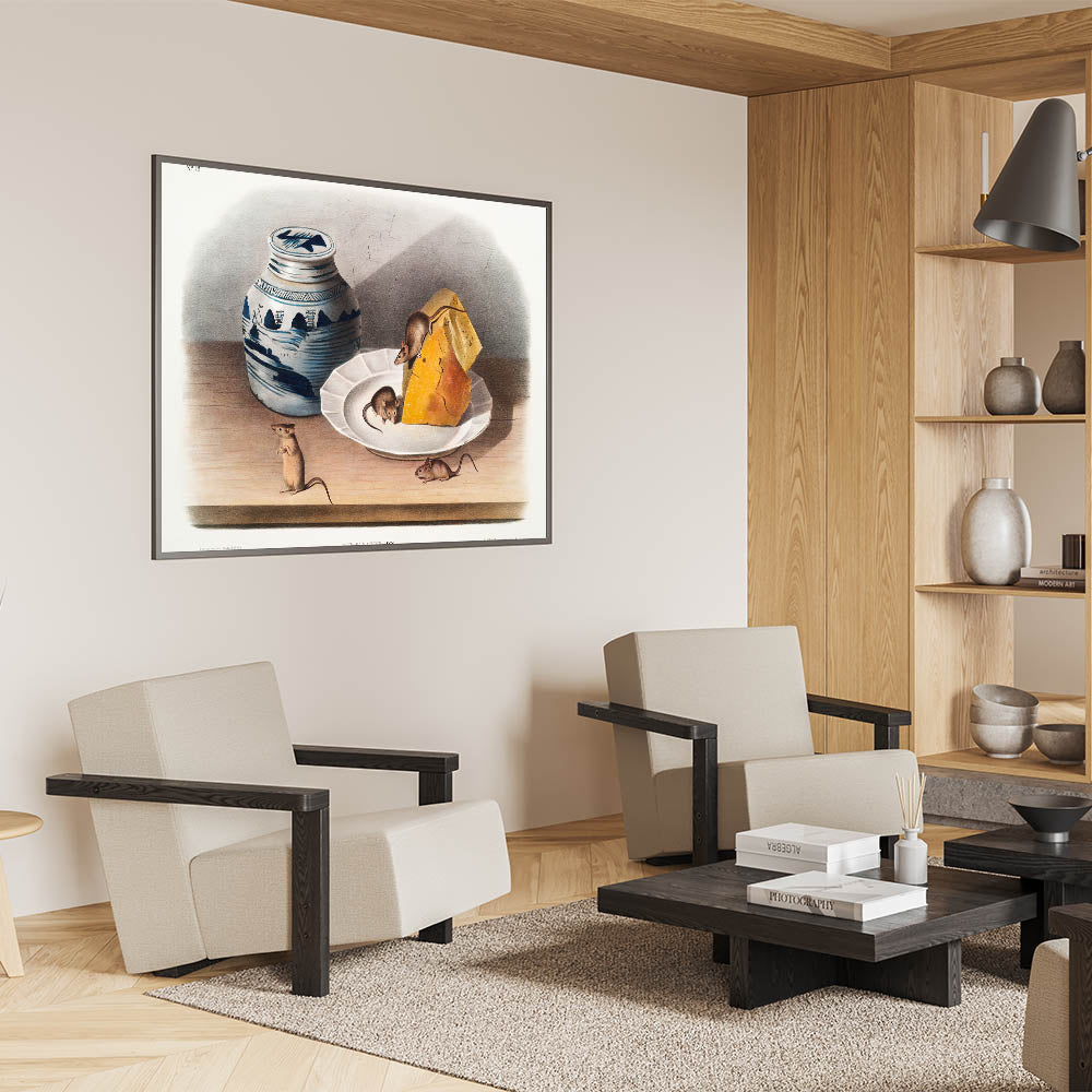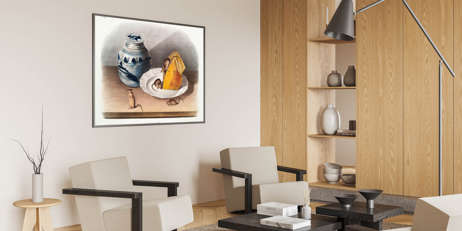 Infuse your space with whimsy and elegance with this Romanticism style wall art, featuring John Woodhouse Audubon’s detailed still life of mice and cheese. This artwork masterfully combines scientific precision with artistic charm, a hallmark of historic and cultural wall decor. The vibrant colors and fine details evoke the Romantic era’s fascination with both nature and everyday scenes, making it a unique addition to any art collection.