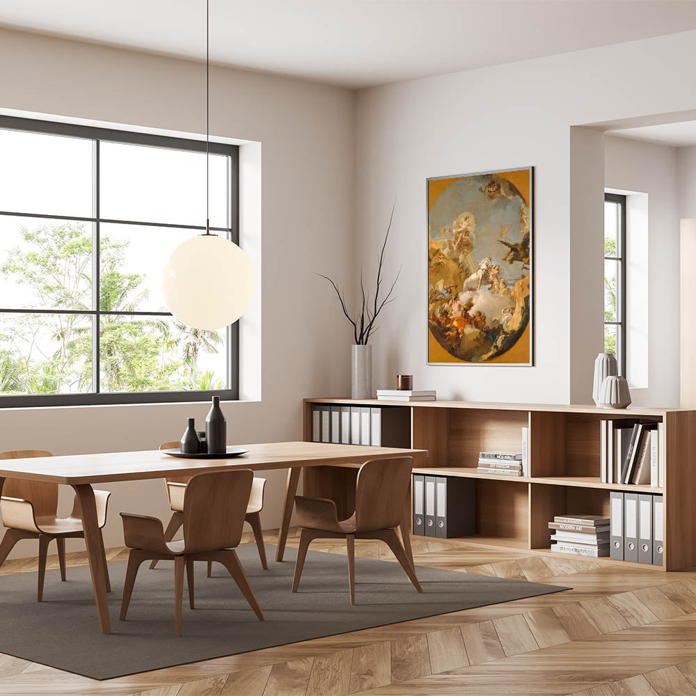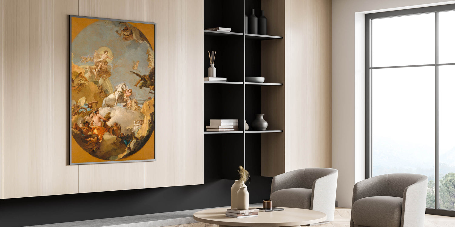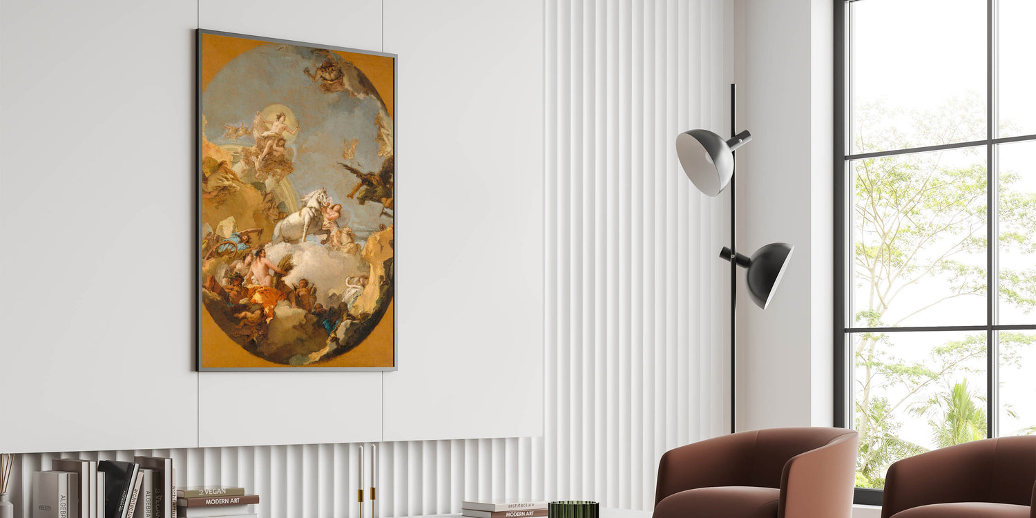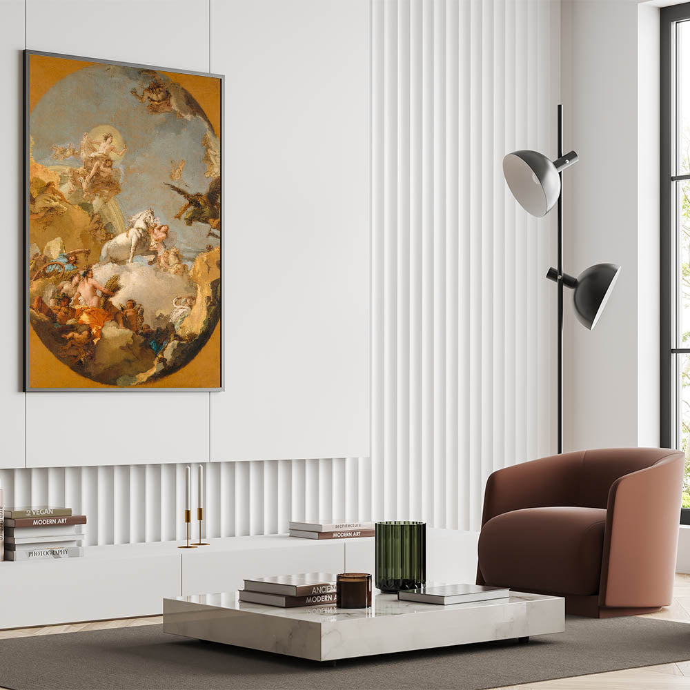 This exquisite Romantic art for home décor is a must-have for lovers of classical art, mythology, and Tiepolo's breathtaking frescoes. Let this masterpiece elevate your interior with its timeless charm and celestial grace.