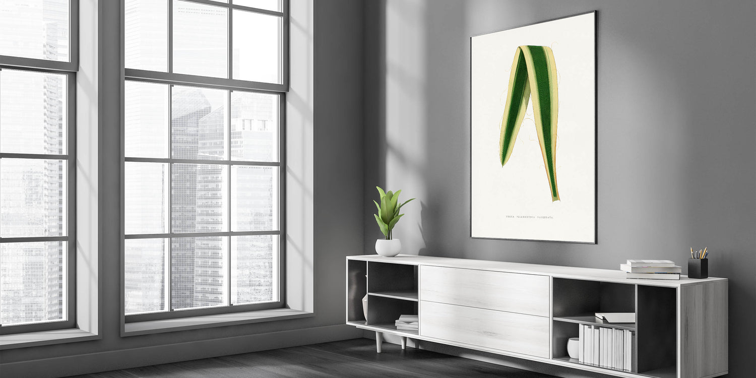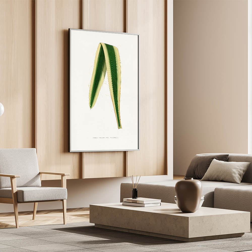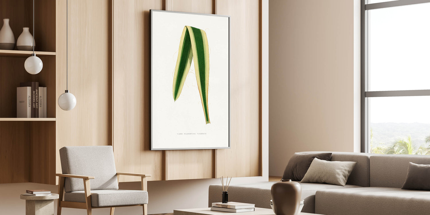 Bring the tranquility of nature into your home with this elegant Romanticism style wall art featuring the Yucca Filamentosa Variegata leaf, beautifully illustrated by Alexander Francis Lydon and Benjamin Fawcett. This timeless artwork, from the 1865 edition of Les Plantes à Feuillage Coloré, reflects the meticulous attention to detail and naturalistic beauty that define the classic art of the Romantic era.