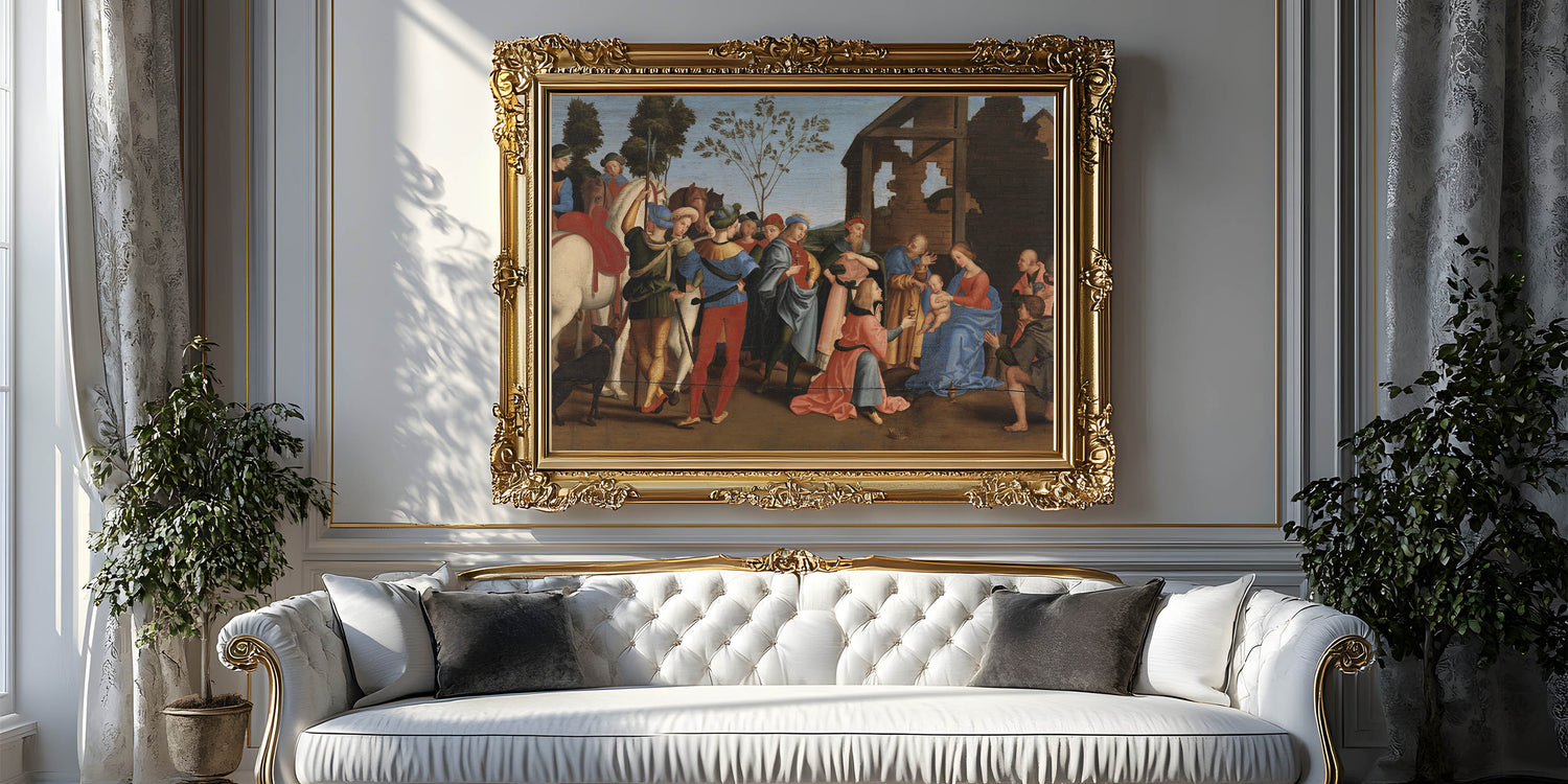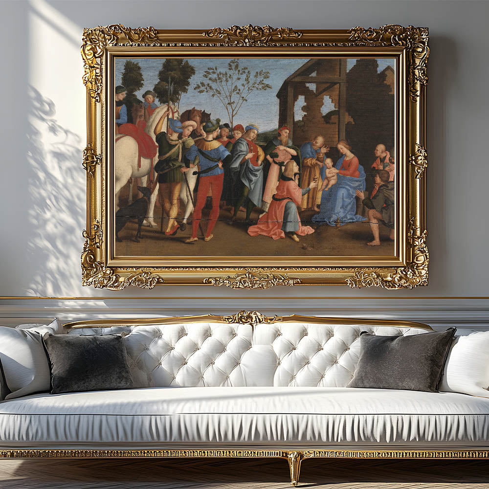 Bring timeless elegance to your space with The Adoration of the Magi, a stunning Renaissance masterpiece attributed to Raphael. This artwork captures the profound spiritual and cultural essence of the Italian Renaissance, showcasing intricate details, vibrant colors, and harmonious composition.