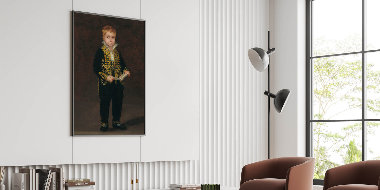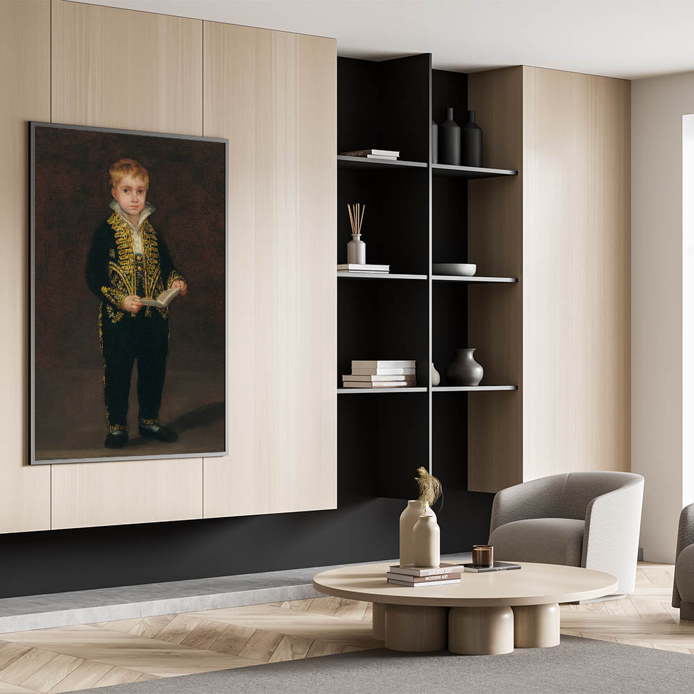 Introduce timeless elegance to your home with Victor Guye by Francisco Goya, a masterpiece of the Romanticism era. This stunning artwork showcases the emotional depth and historic significance of Romanticism style wall art, making it perfect for collectors and art enthusiasts. Goya's intricate detailing in the young boy's ceremonial attire reflects the era's fascination with cultural heritage and individual expression.