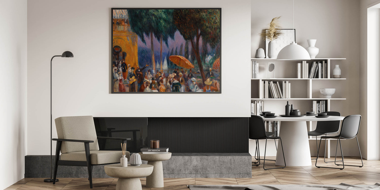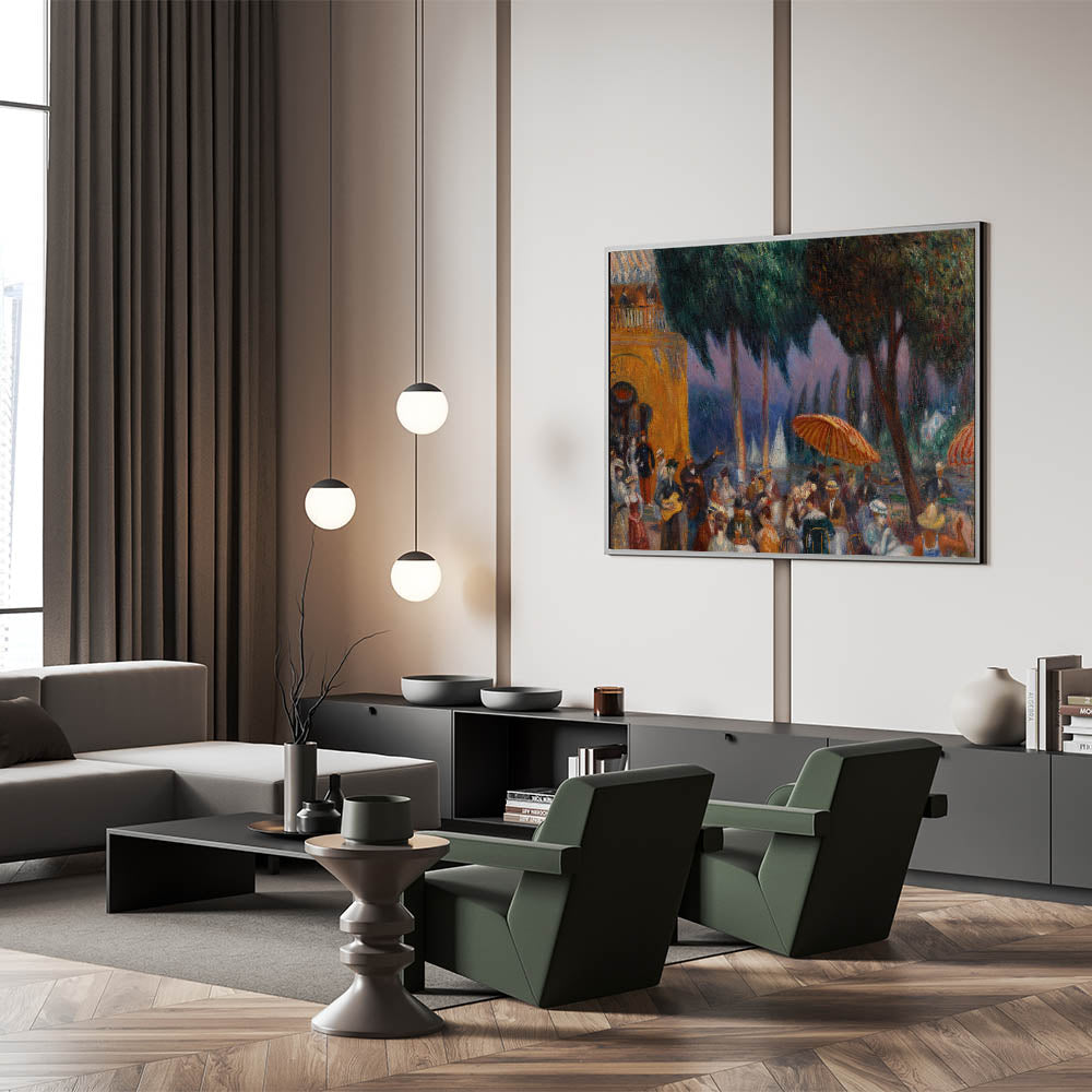Enhance your decor with this captivating outdoor gathering scene, ideal for adding Modern Design Elements that create an inviting and festive ambiance. This artwork is perfect for inspiring relaxation and conversation in any room.