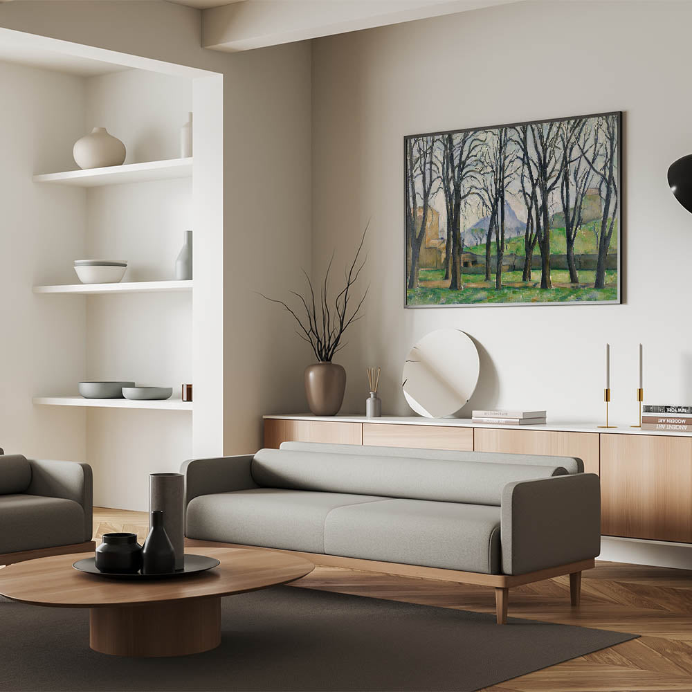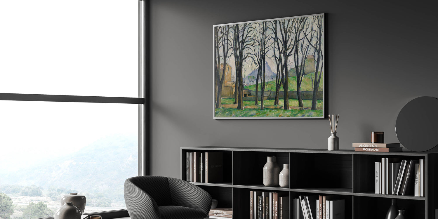 Bring the beauty of nature into your home with this serene modern wall art, showcasing a tranquil landscape of chestnut trees. Painted in a delicate and impressionistic style, this artwork captures the raw beauty of bare trees against a backdrop of soft greens and muted blues. It’s a timeless piece that effortlessly combines modern design elements with the calming essence of the outdoors.