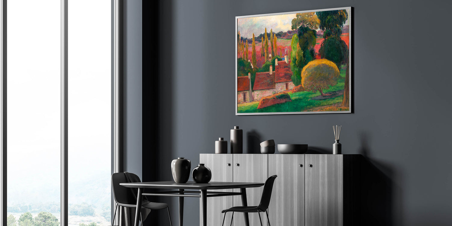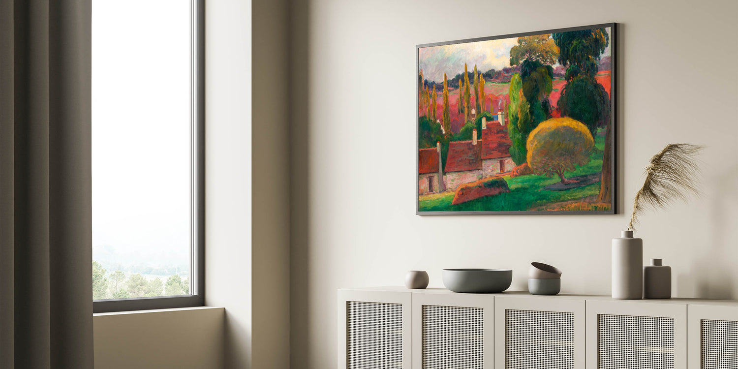 Bring the warmth and vitality of Gauguin’s unique style into your home with this stunning landscape. Ideal for art lovers and those seeking a vibrant touch in their decor, this piece radiates the beauty of Impressionism and rural landscapes.