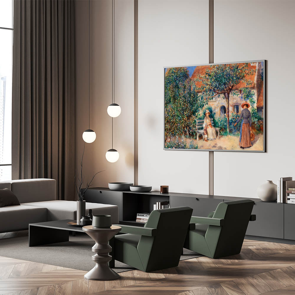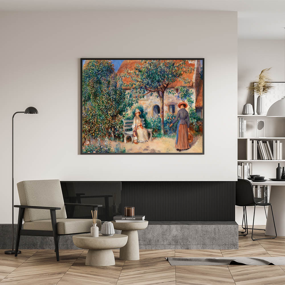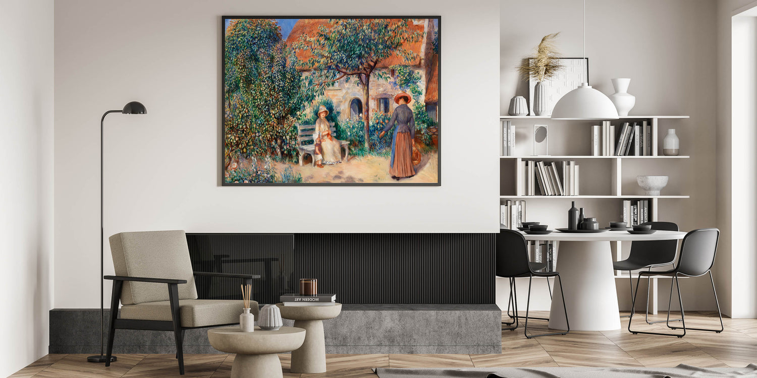 Step into the peaceful charm of a French garden with Pierre-Auguste Renoir’s "In Brittany." This Impressionist masterpiece beautifully captures a quiet moment between two women in a lush garden, surrounded by trees, flowers, and traditional architecture. Renoir’s gentle brushwork and vibrant colors bring the scene to life, making it an inviting and timeless addition to any space.