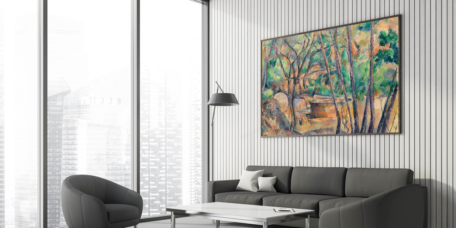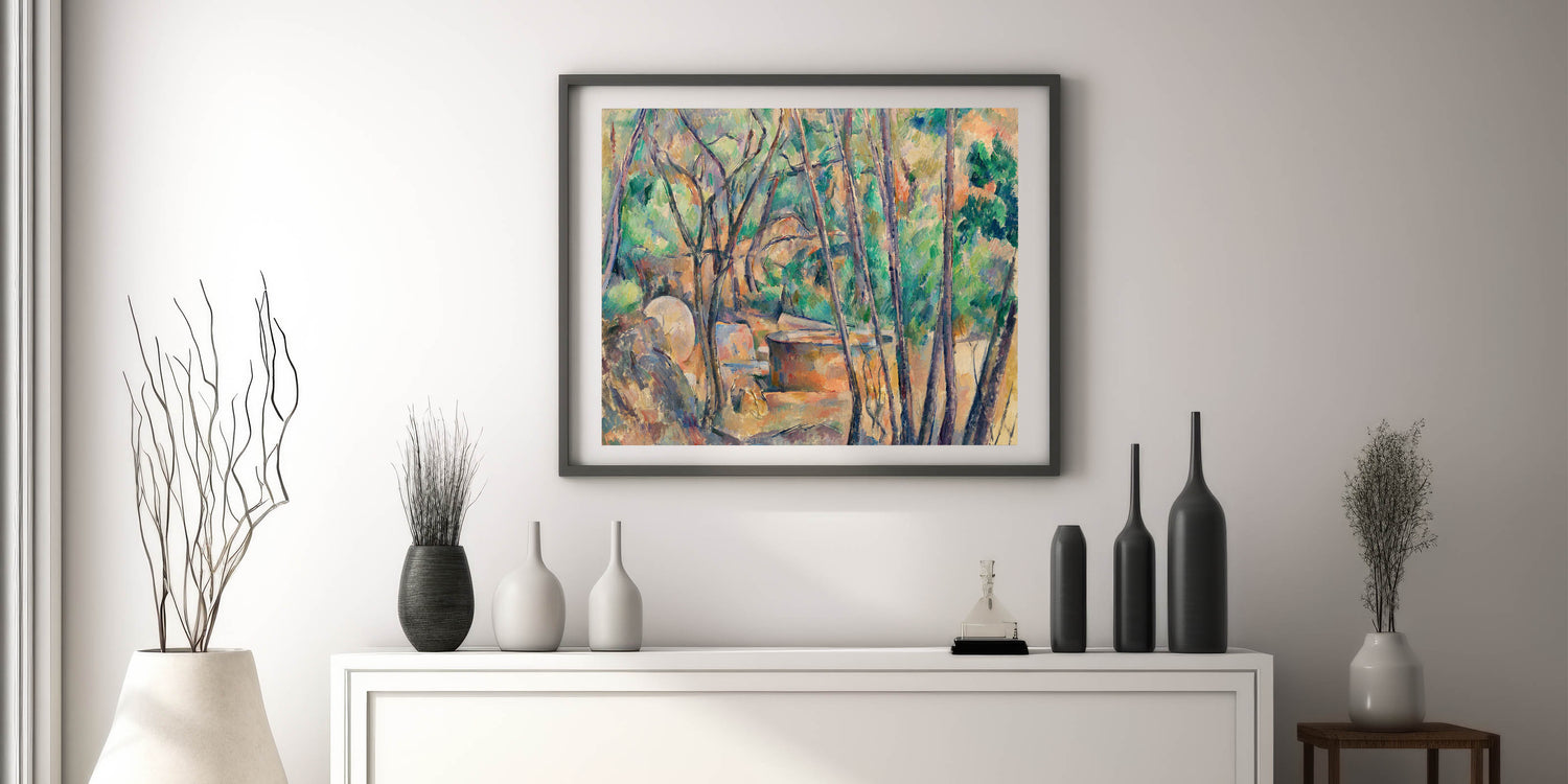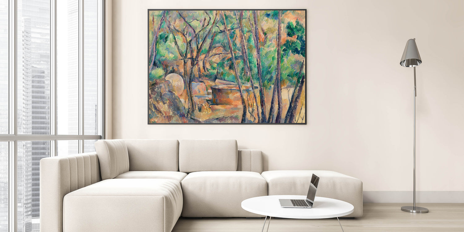 Add a piece of timeless Impressionist art to your home with this woodland scene by Cézanne, ideal for creating a tranquil, nature-inspired space.