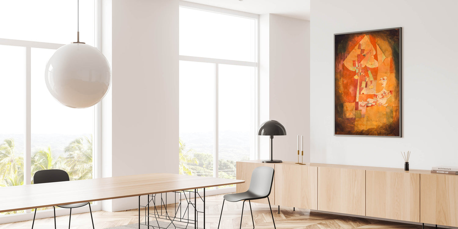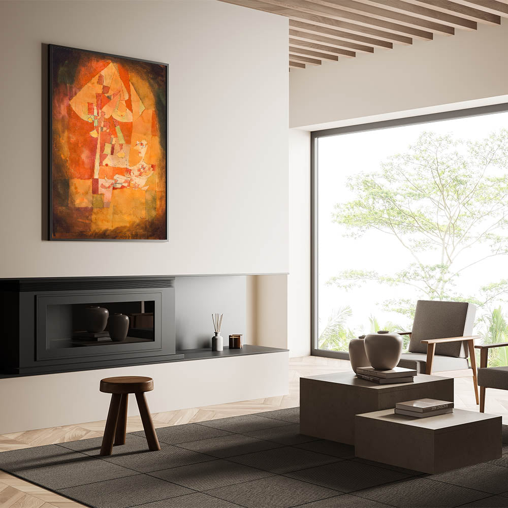 Add a touch of abstract elegance to your decor with this modern wall art inspired by Paul Klee’s The Man Under the Pear Tree (1921). With its warm, earthy colors and playful, geometric shapes, this artwork embodies Klee’s distinctive abstract style. The piece invites viewers into a surreal world, where forms and colors harmonize to create a unique visual experience. Perfect for art enthusiasts and those who appreciate modern, abstract decor, this piece adds depth and character to any space.
