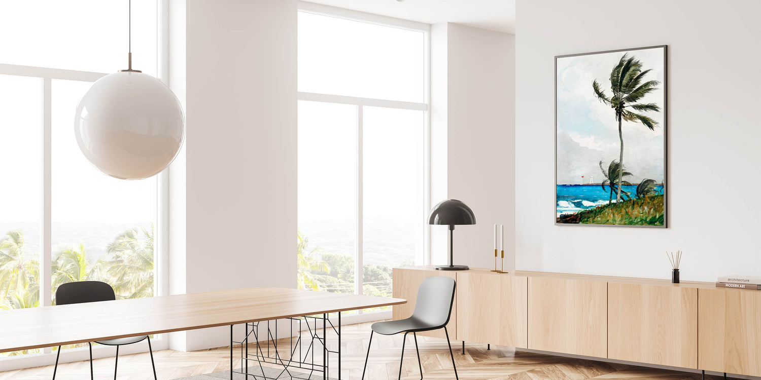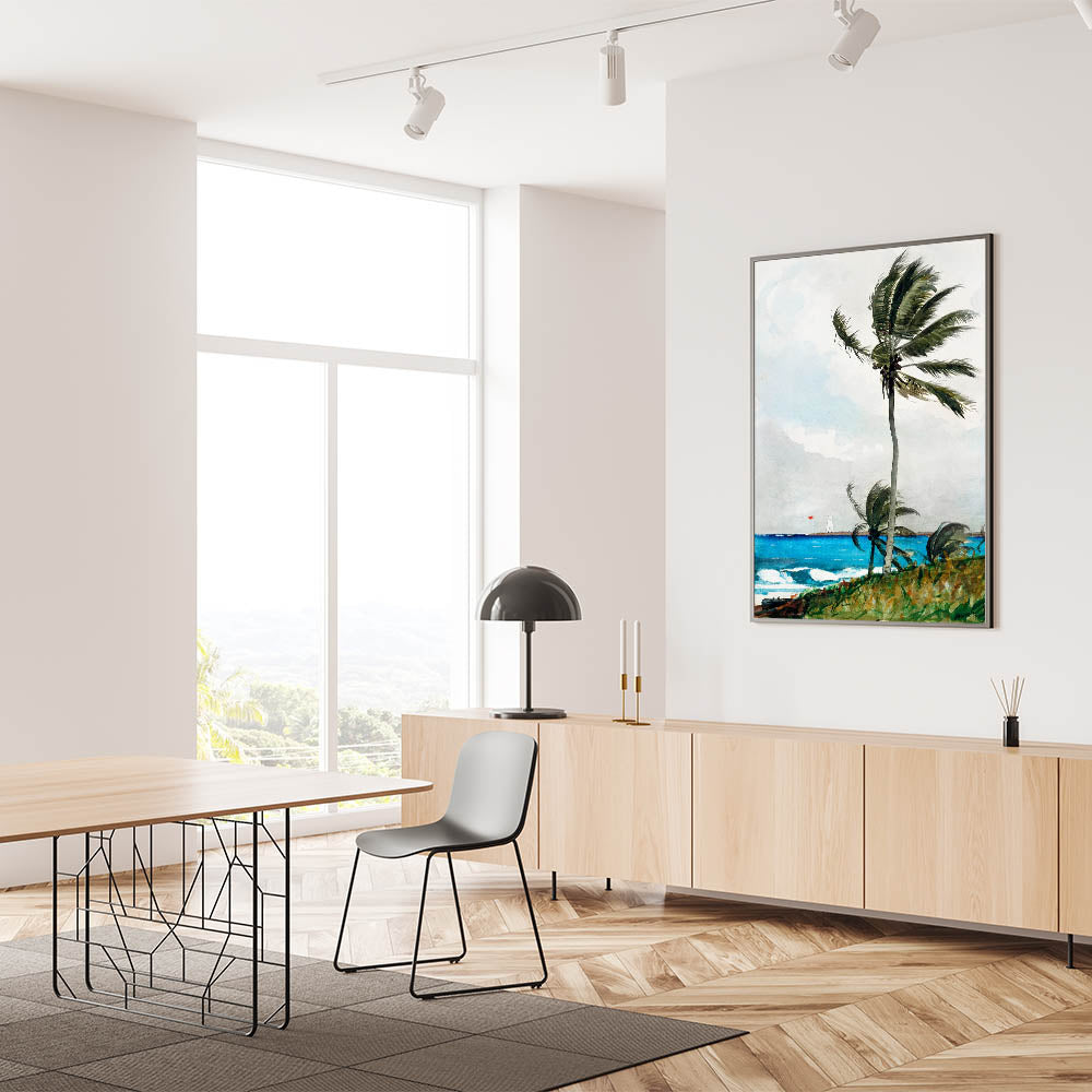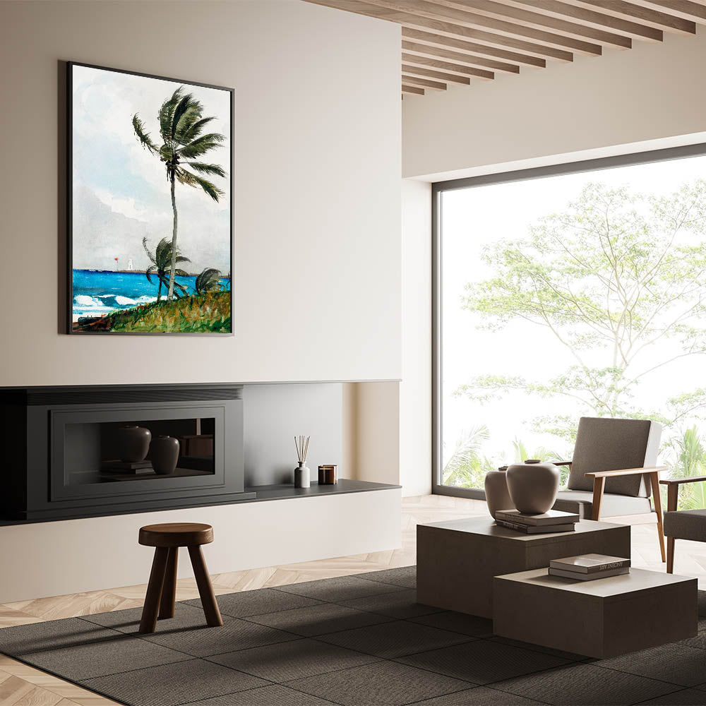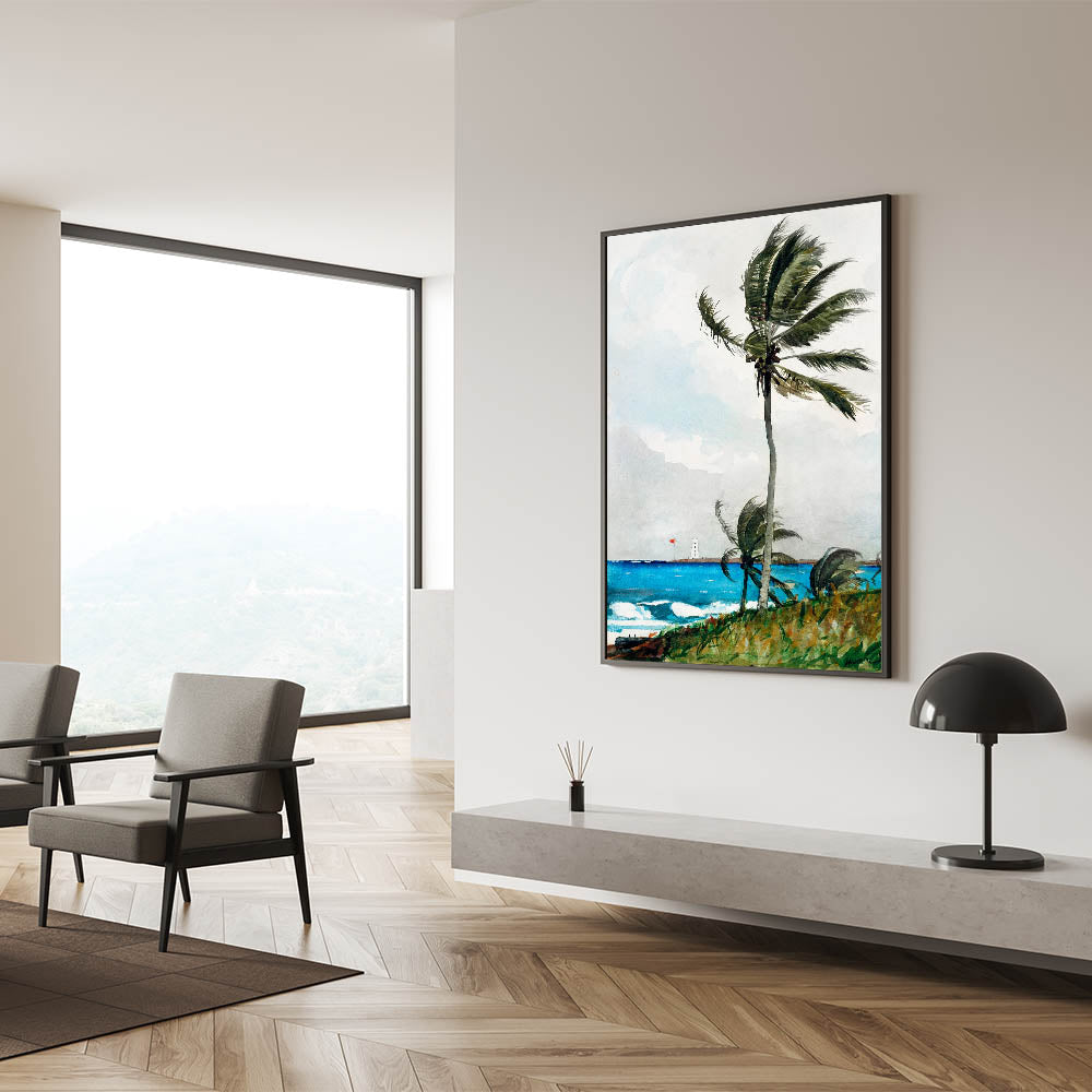 Bring the refreshing essence of the tropics into your home with "Palm Tree, Nassau" Realism Art Print by Winslow Homer. Created in 1898, this piece captures the serene beauty of a tropical coastline, complete with tall, swaying palm trees and the gentle waves of the sea. Homer’s masterful watercolor work evokes a sense of calm and escapism, transporting viewers to a coastal paradise. Ideal for those who love beach scenes and tropical decor, this artwork adds a breezy, relaxing ambiance to any space.
