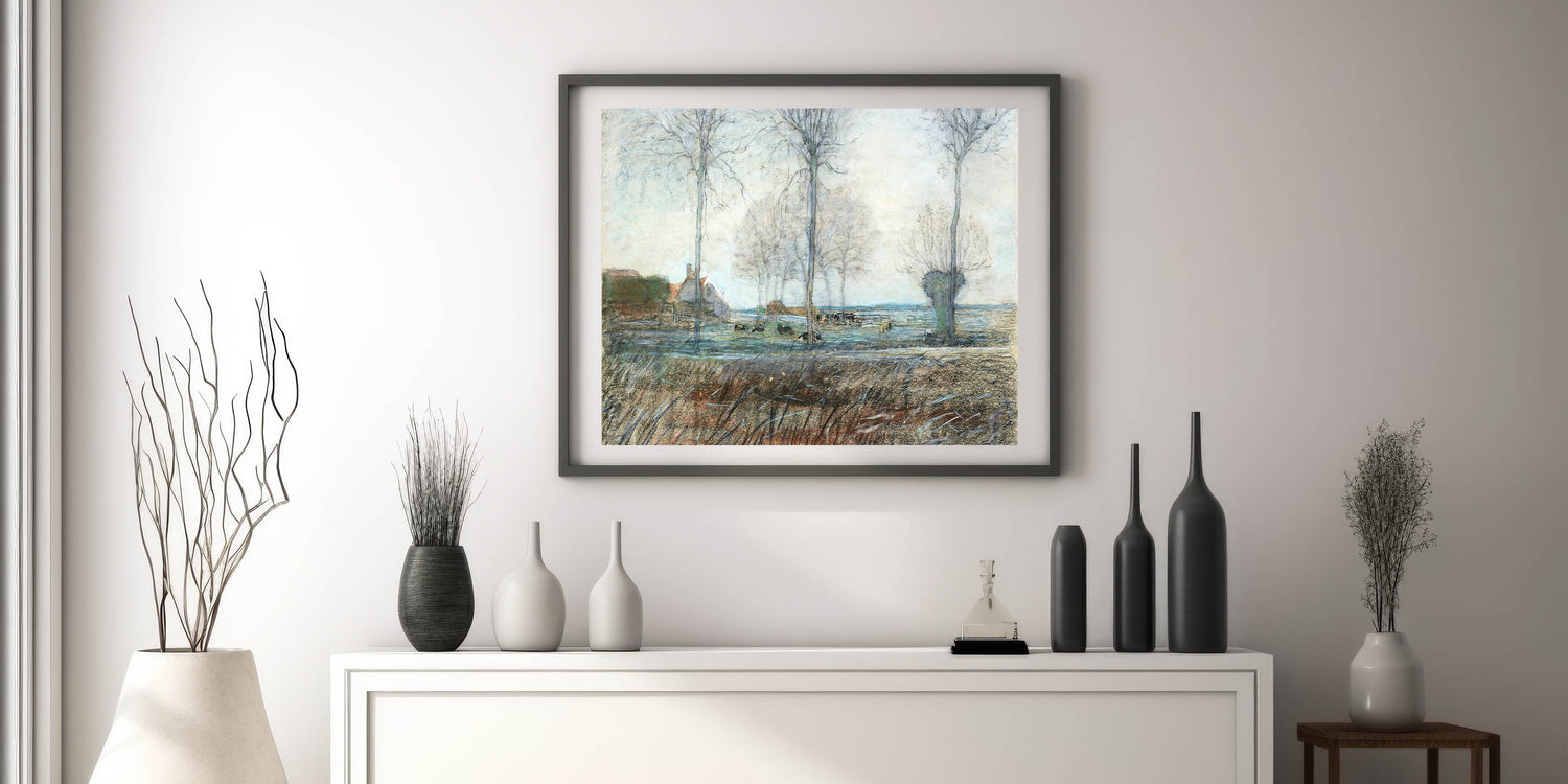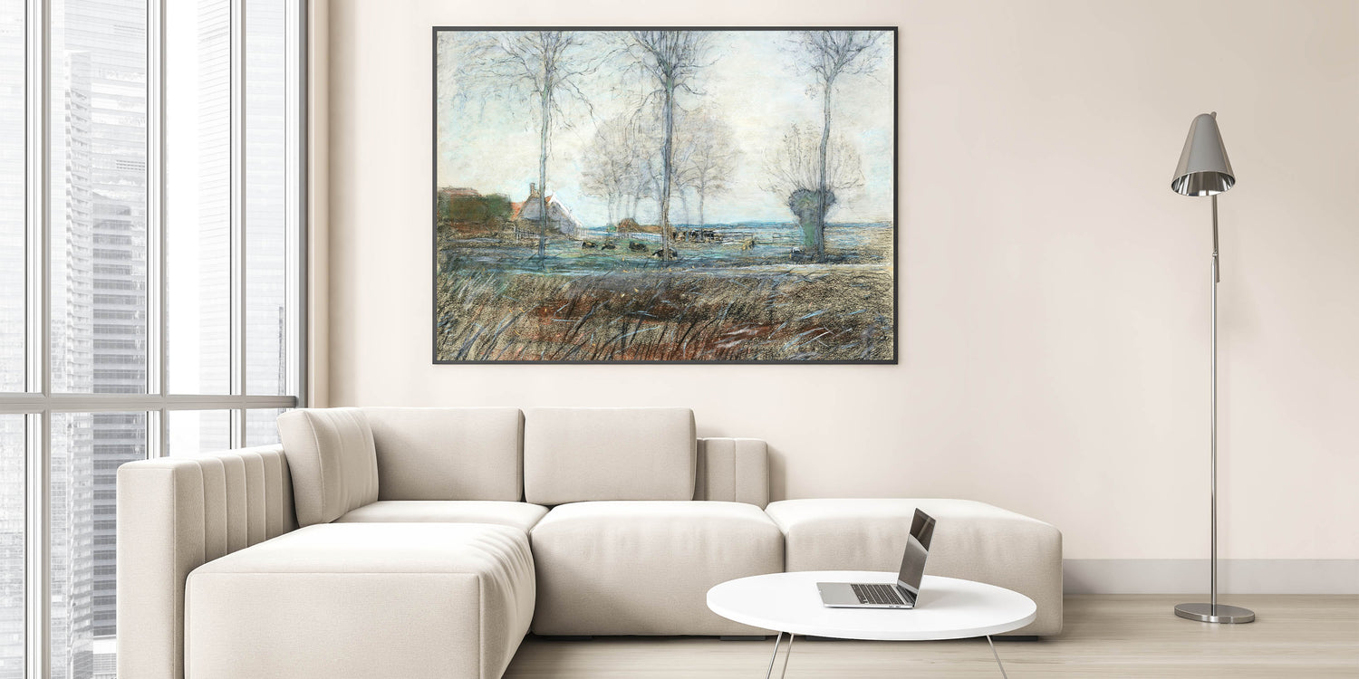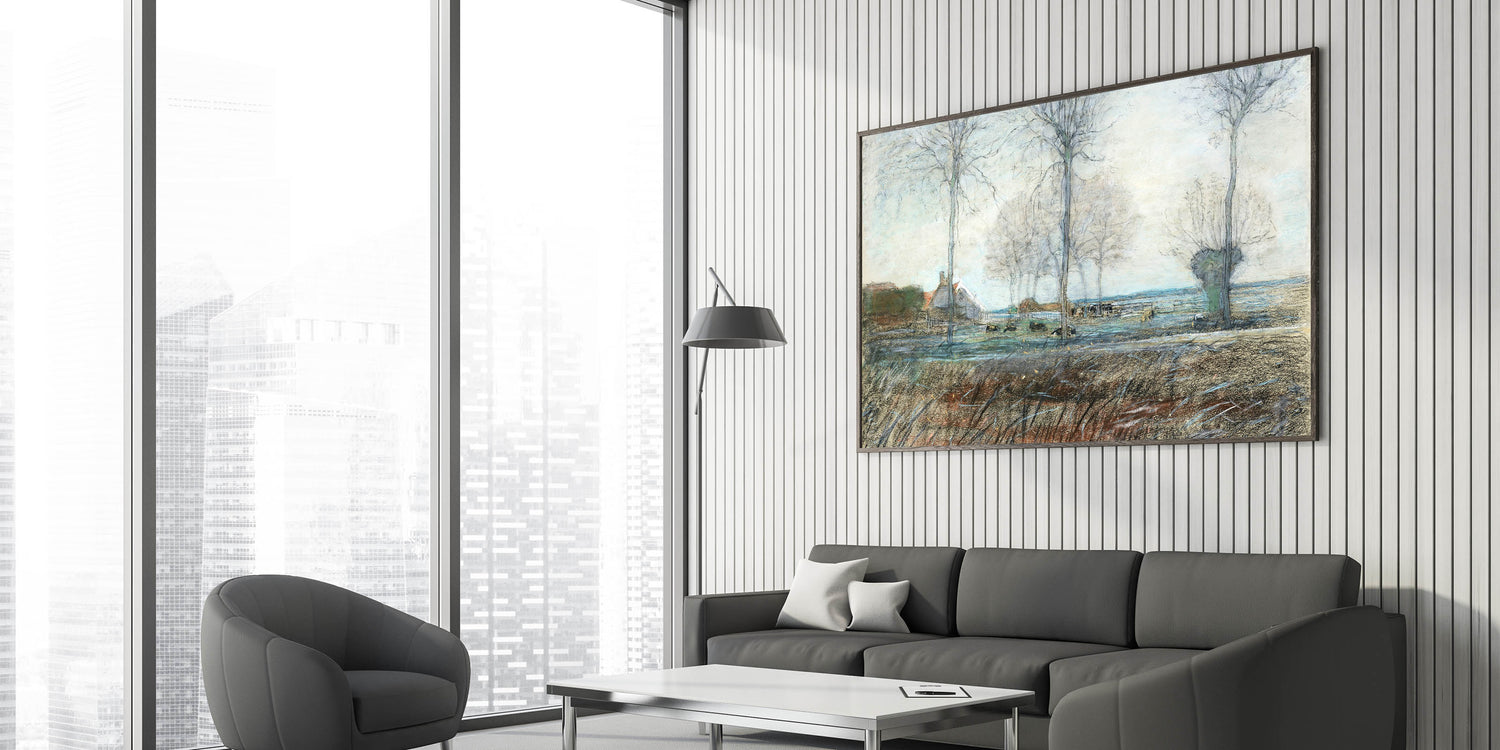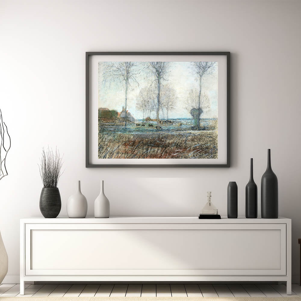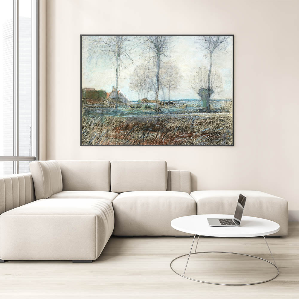 Embrace the simplicity and beauty of nature with this stunning artwork, capturing the essence of a countryside setting. It’s a perfect choice for anyone looking to enhance their home with a peaceful, modern country vibe.
