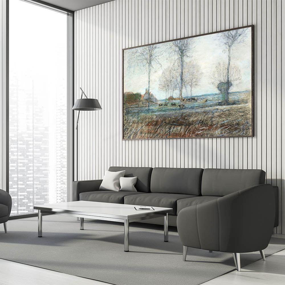 Bring a touch of tranquility into your home with this beautiful farm landscape wall art, featuring delicate trees and a peaceful rural setting. This piece is perfect for those who seek stylish wall art that blends contemporary design with the charm of nature, making it a versatile addition to any decor.