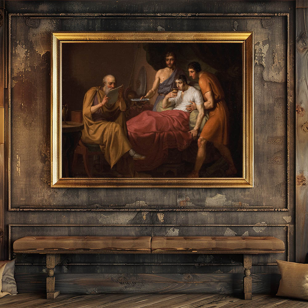Experience the solemn beauty of Neoclassical art with Alexander the Great on his Sickbed by C.W. Eckersberg. This powerful painting depicts a reflective scene of the great conqueror Alexander, surrounded by loyal aides as he battles illness. The attention to historical detail, from the attire to the emotional expressions, captures the essence of Greco-Roman themes and the idealism of the Neoclassical movement. Eckersberg’s portrayal emphasizes the ideals of loyalty, strength, and humanity, offering a glimpse into both Alexander’s legacy and the timeless themes of Greek antiquity.