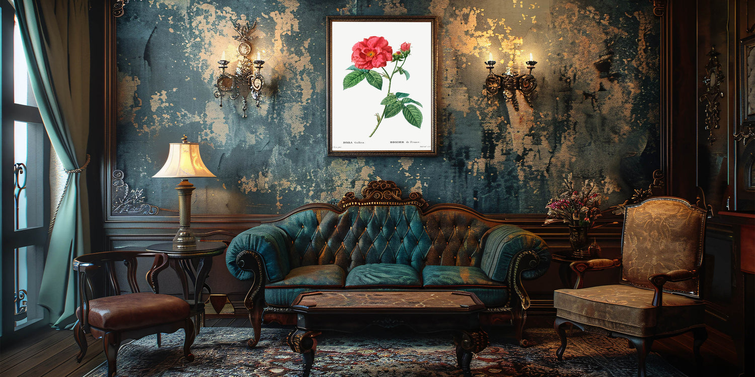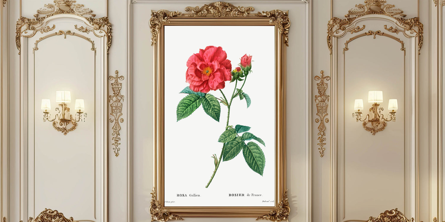 Neoclassical Art Print: French Rose by Redouté - Classic Botanical Decor