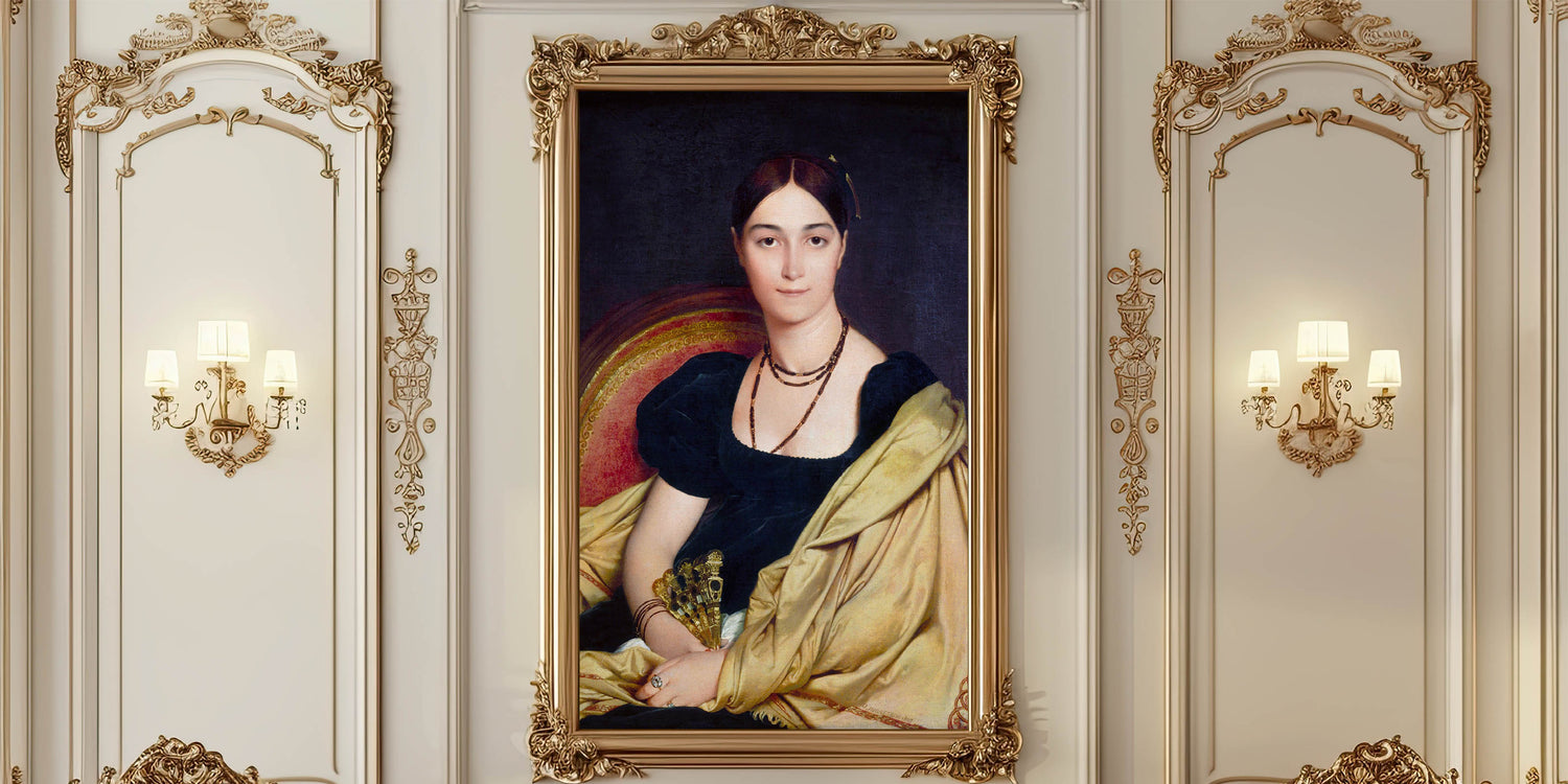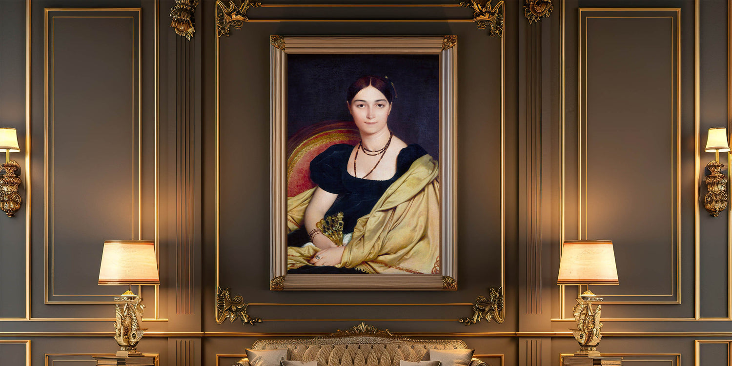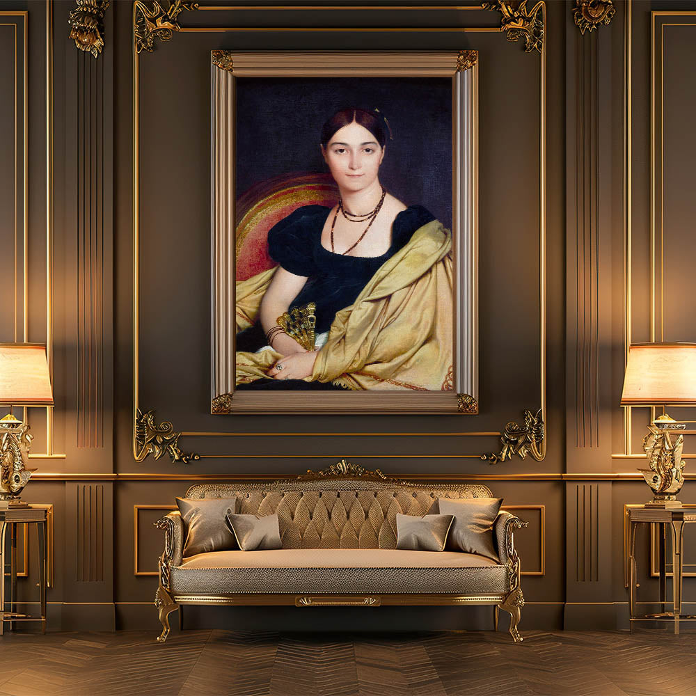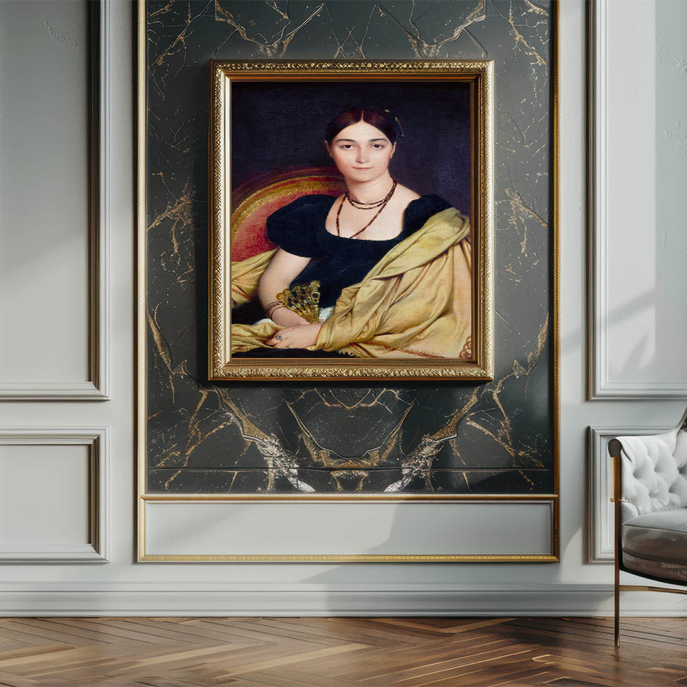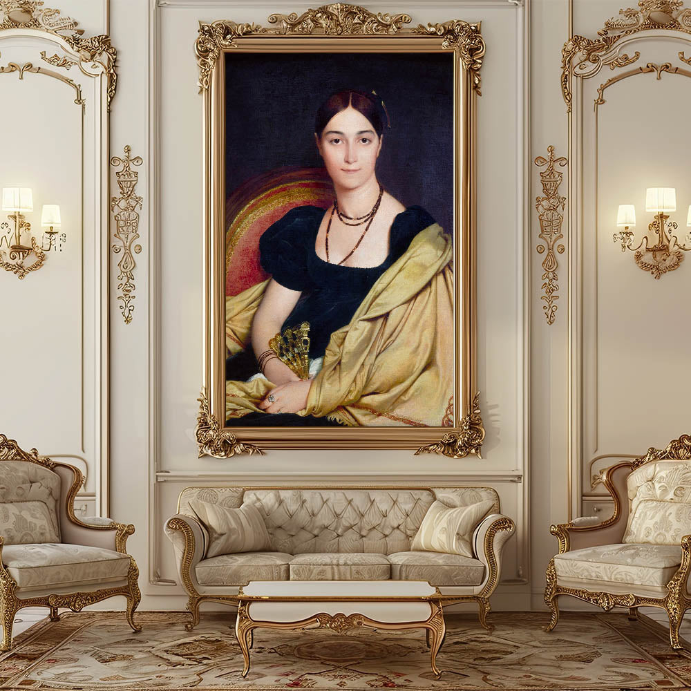 Experience the elegance of Neoclassicism with this exquisite reproduction of Madame Duvaucey by Jean-Auguste-Dominique Ingres, a revered French painter of the 18th century. This artwork epitomizes the Neoclassical style, portraying grace and refined detail inspired by classical antiquity. With rich, dark hues and a soft gold drapery, this piece brings timeless beauty to any space, capturing the idealism and simplicity characteristic of the period.