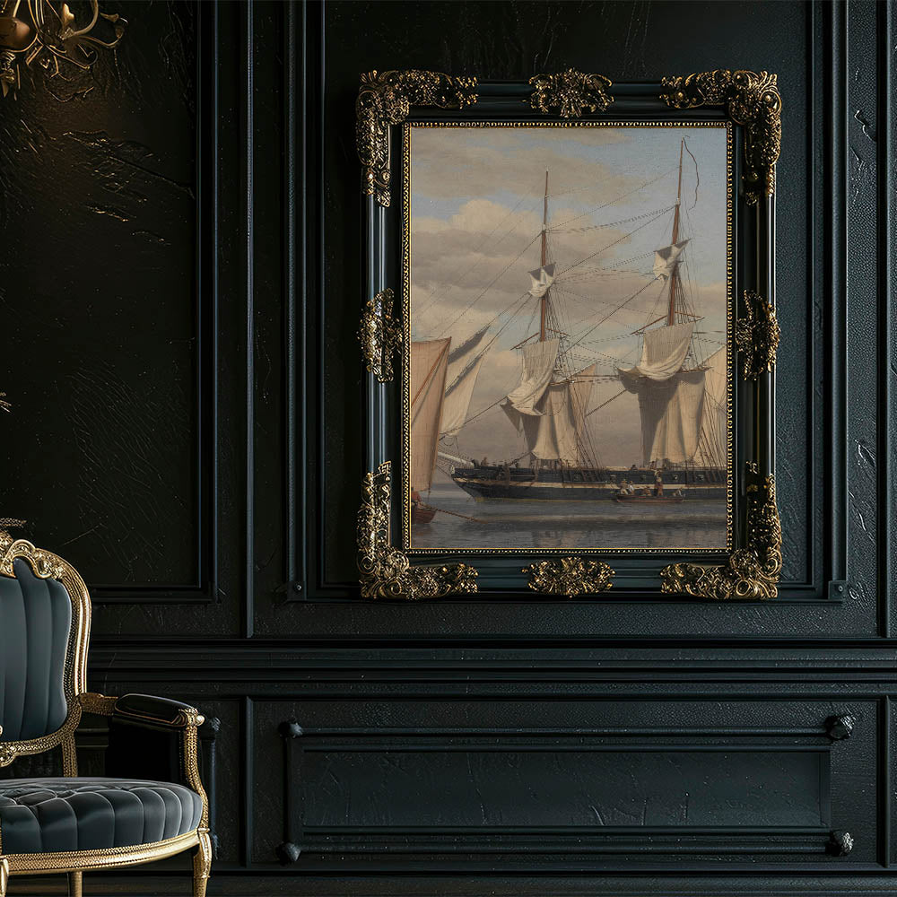 Neoclassical Naval Brig at Anchor Print - Maritime Art by Eckersberg