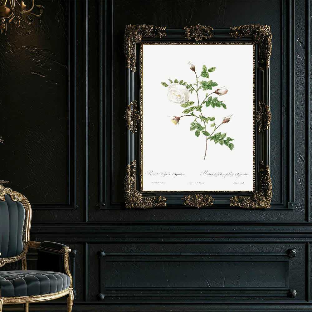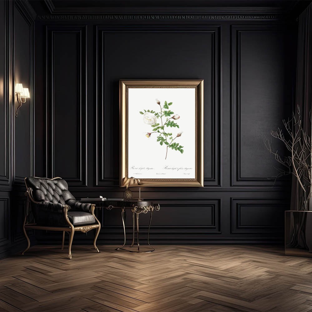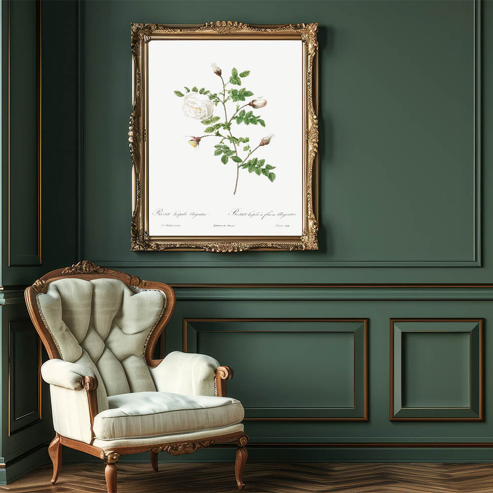Embrace the timeless beauty of the Neoclassical period with this elegant Silver-Flowered Hispid Rose print. Perfect for adding refinement and classical charm to any room, this piece is a testament to the enduring appeal of botanical art.