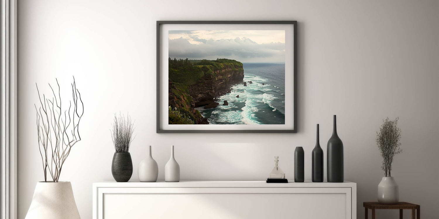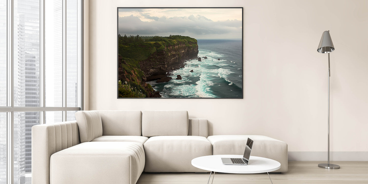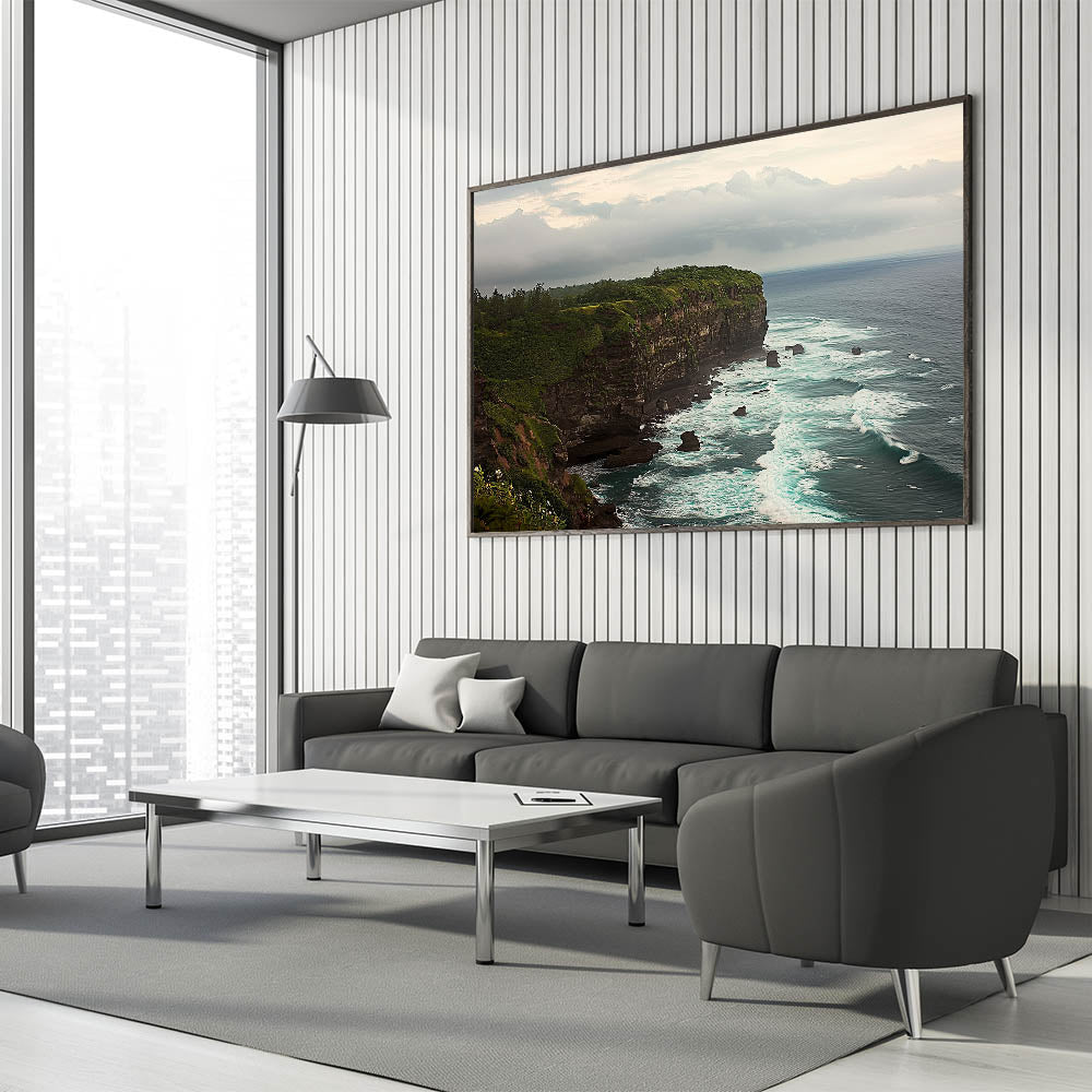 Bring the breathtaking beauty of nature into your home with this Cliffs Canvas Art. This stunning artwork captures the dramatic cliffs overlooking a serene ocean, with waves gently crashing along the rugged coastline. The lush greenery atop the cliffs adds a vibrant contrast, creating a harmonious and calming visual experience. Ideal for nature lovers and coastal decor enthusiasts, this piece transforms any space into a tranquil retreat.