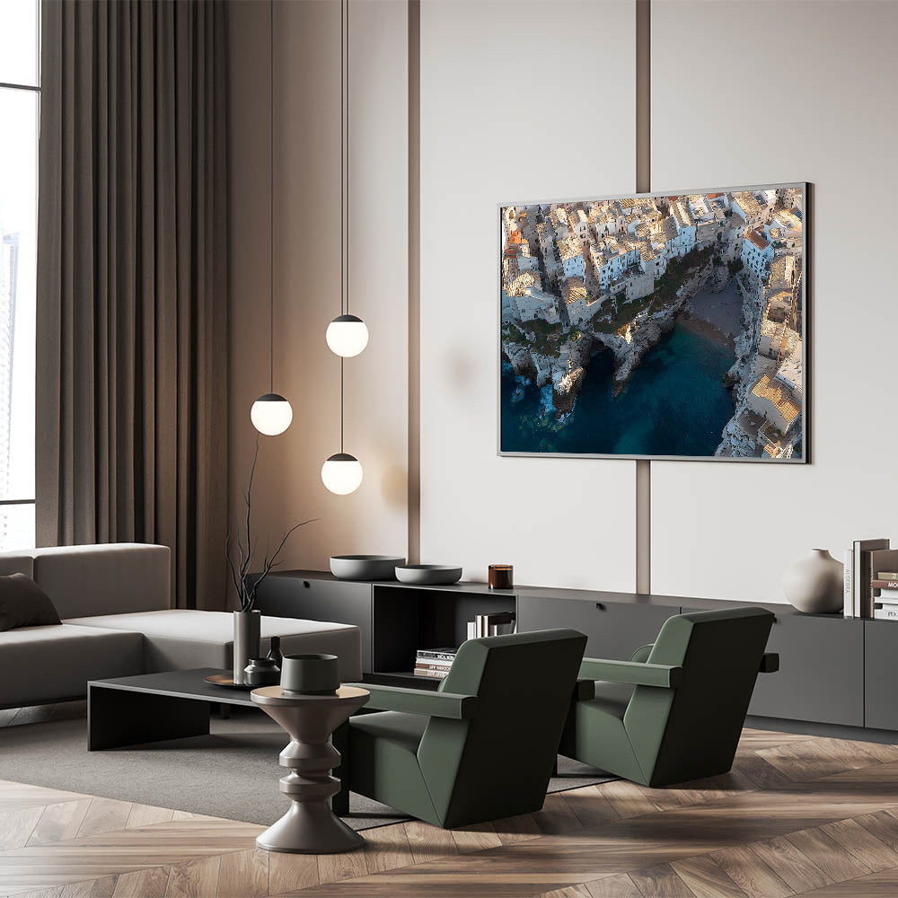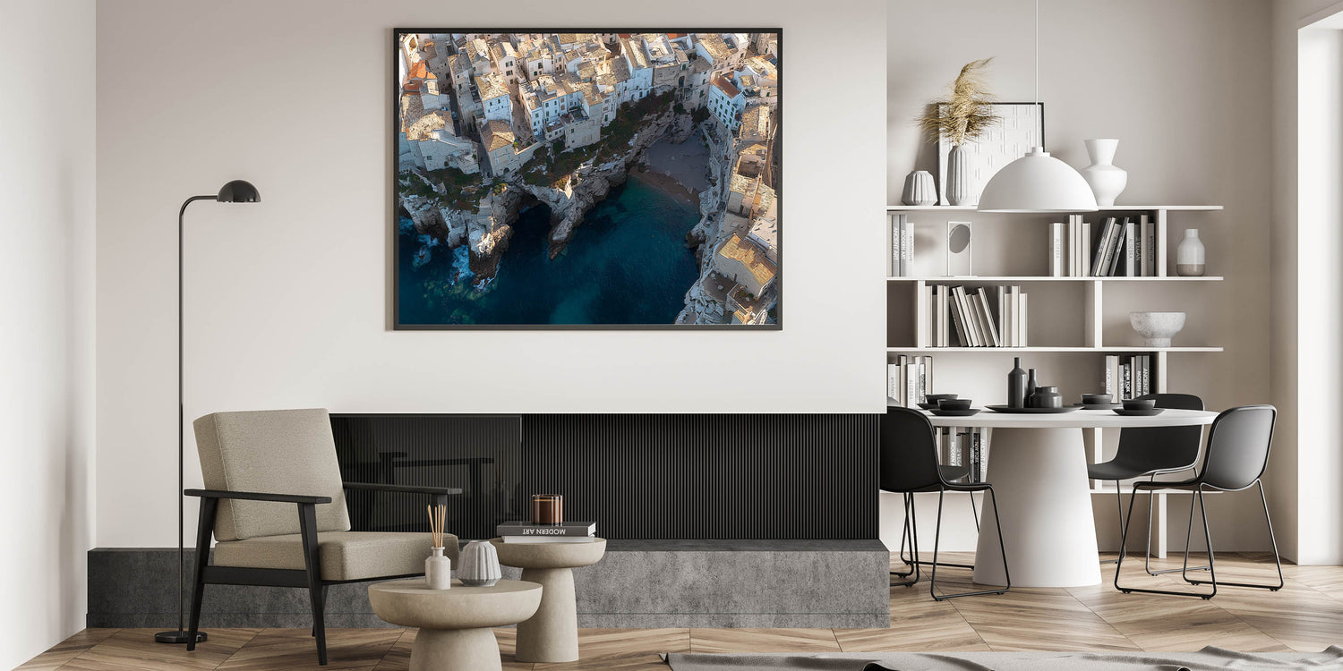- Detailed Imagery: High-resolution reproduction of the vibrant waters, textured cliffs, and charming architecture.
