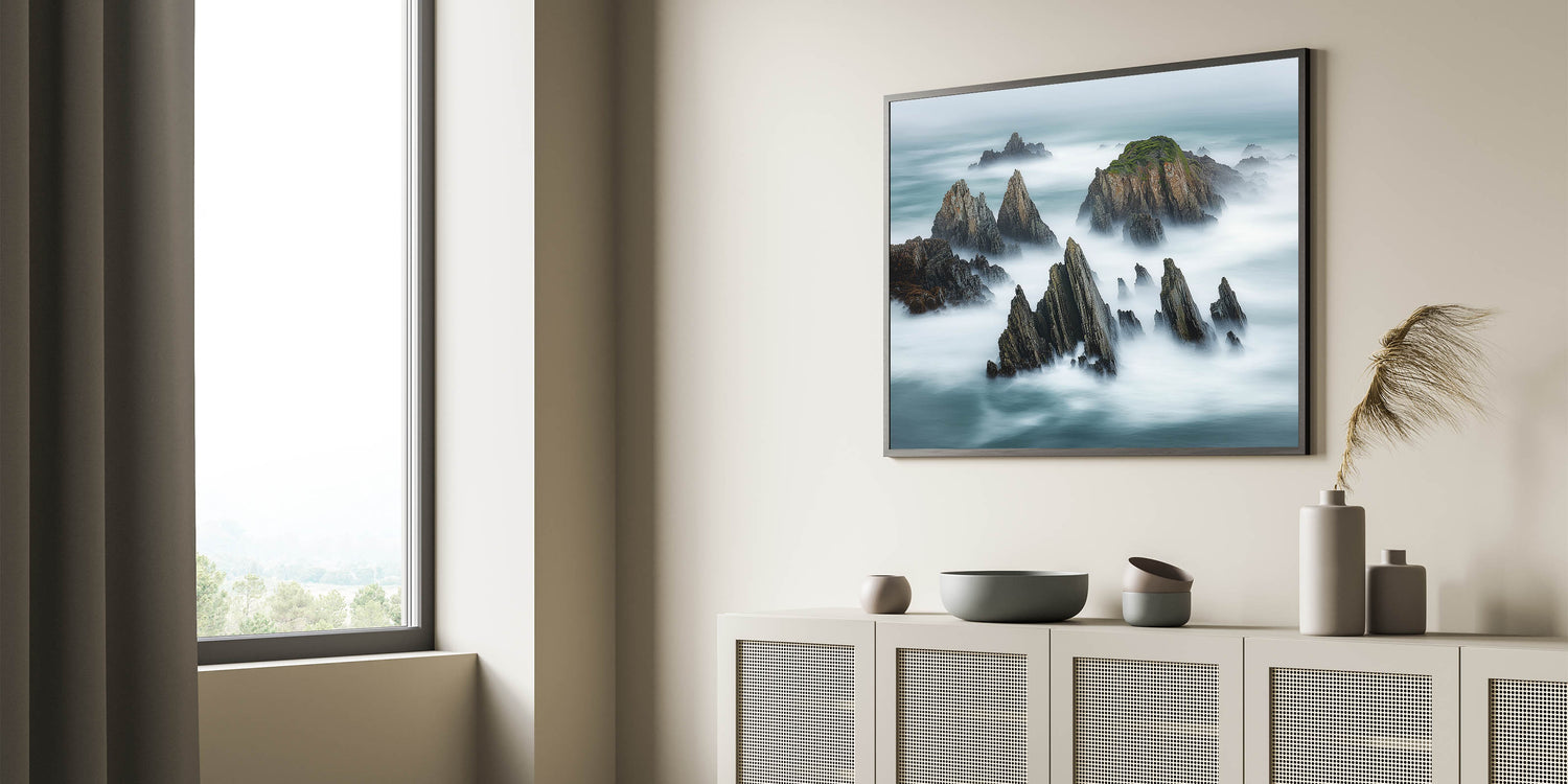 Cliffs Framed Print - Misty Coastal Rocks and Ocean Serenity Wall Art