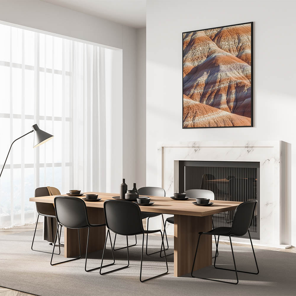 Bring the rugged beauty of the desert into your home with this Cliffs Wall Art, showcasing layered orange and beige hills in a breathtaking textured landscape. The intricate patterns and earthy tones capture the essence of natural geological formations, making this artwork a stunning centerpiece for any room.