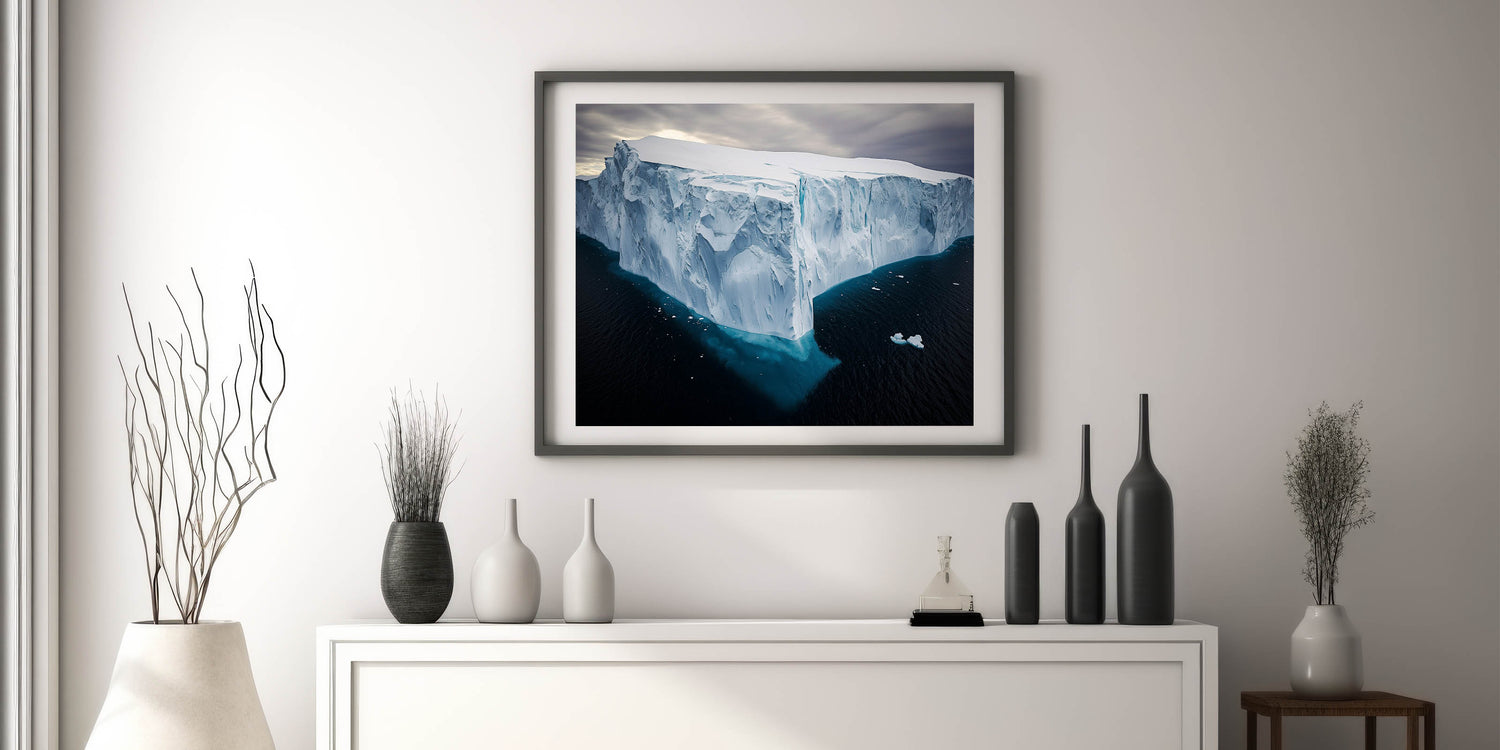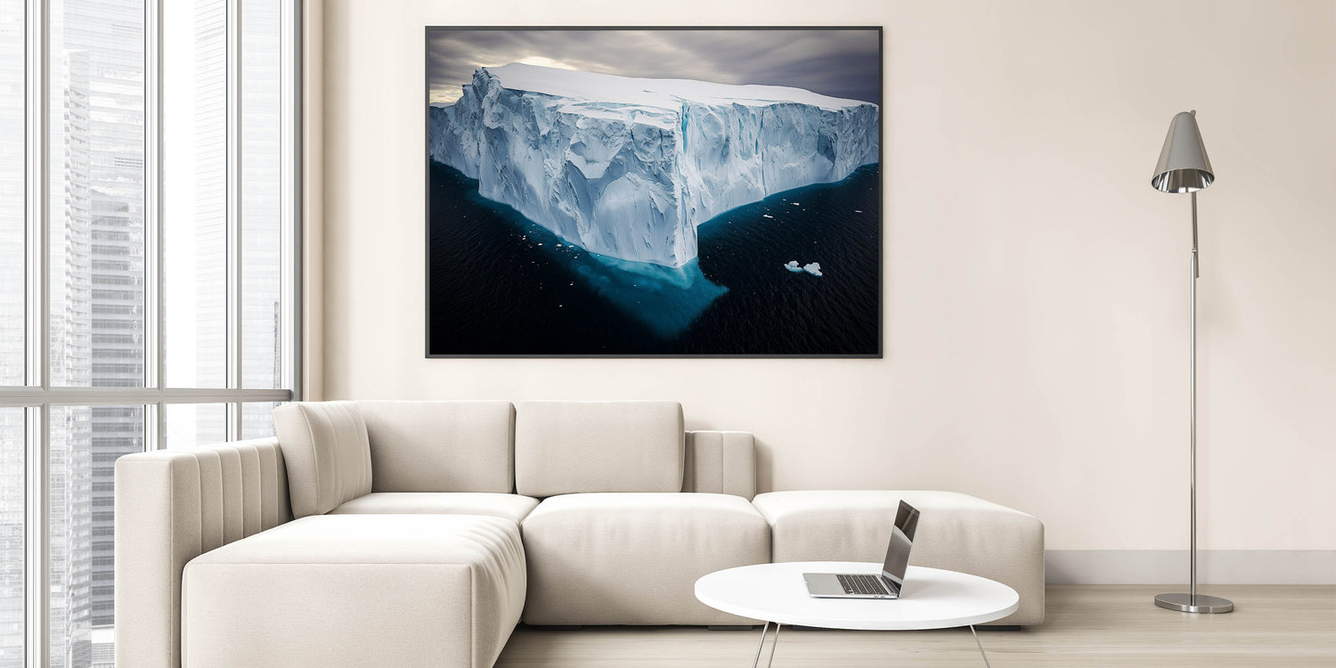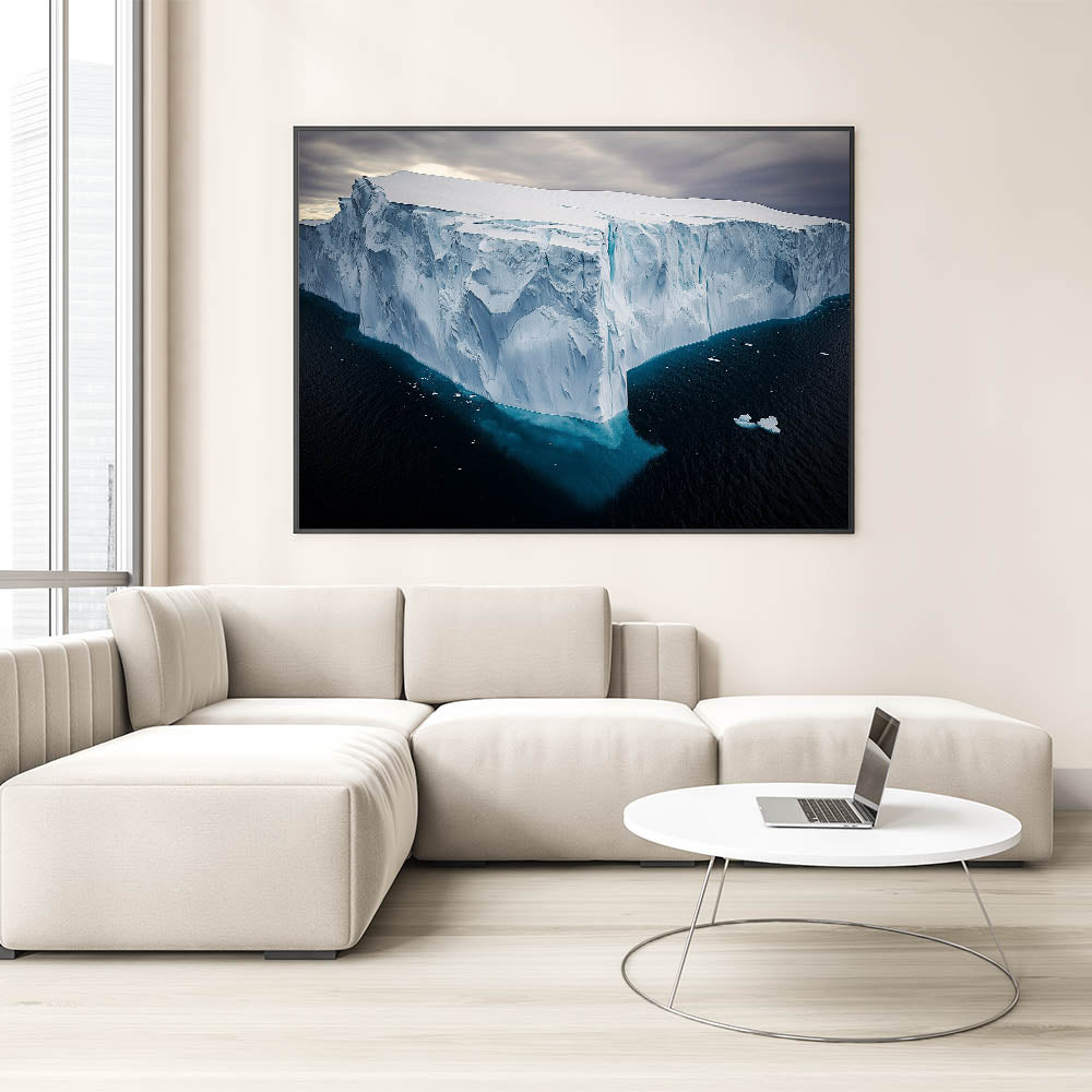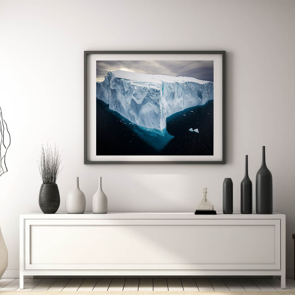 Immerse yourself in the grandeur of the Arctic with this stunning Cliffs Wall Art. Featuring a colossal iceberg rising majestically above dark, icy waters, this artwork captures the raw beauty and sheer scale of nature. The intricate textures of the ice are highlighted by subtle shadows and glacial hues, creating a dramatic and captivating scene. Perfect for those who appreciate the beauty of remote landscapes, this piece brings a sense of wonder and tranquility to any space.