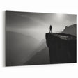 Elevate your interior design with this striking Majestic Cliffs Wall Art. This black and white piece captures the awe-inspiring solitude of a lone figure standing on a cliff's edge, enveloped by misty mountains and an expansive sky. Perfect for modern spaces, this artwork adds a touch of sophistication and drama to any room.