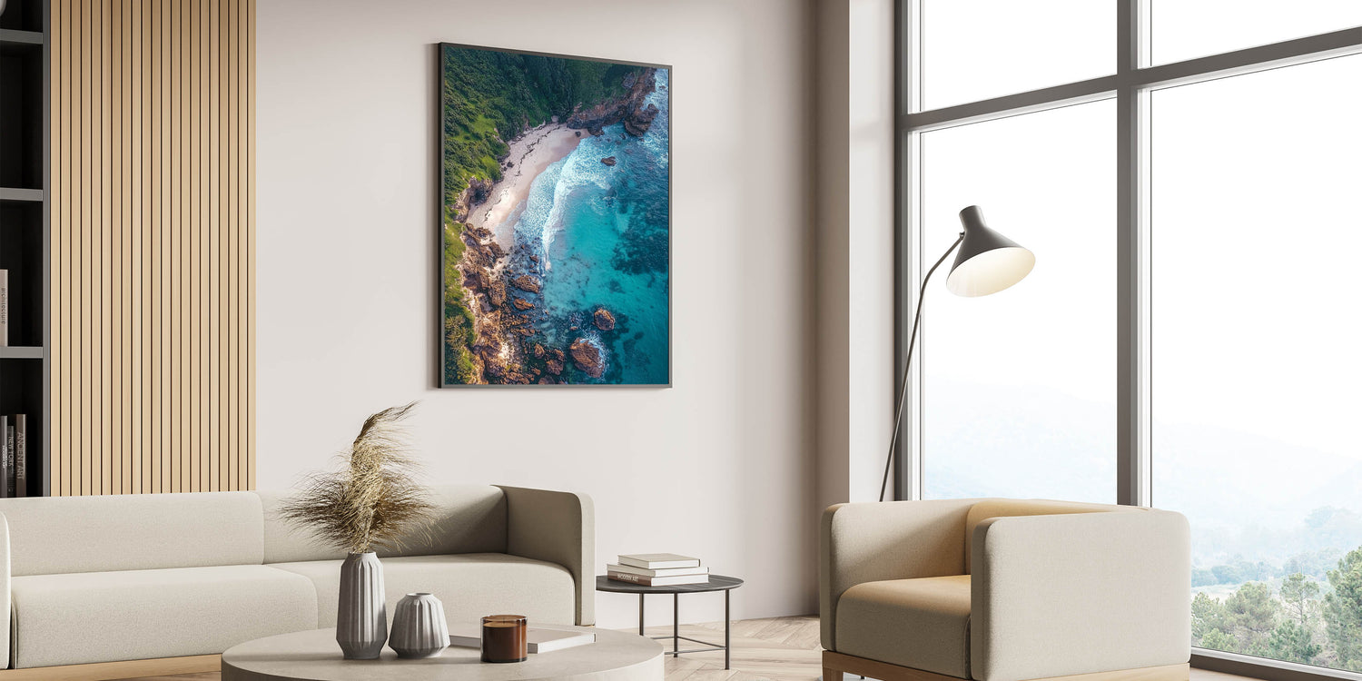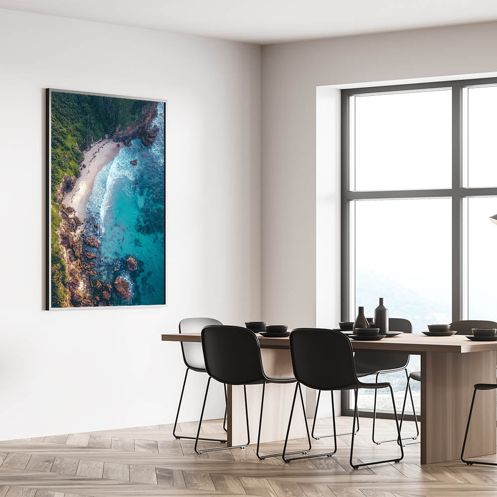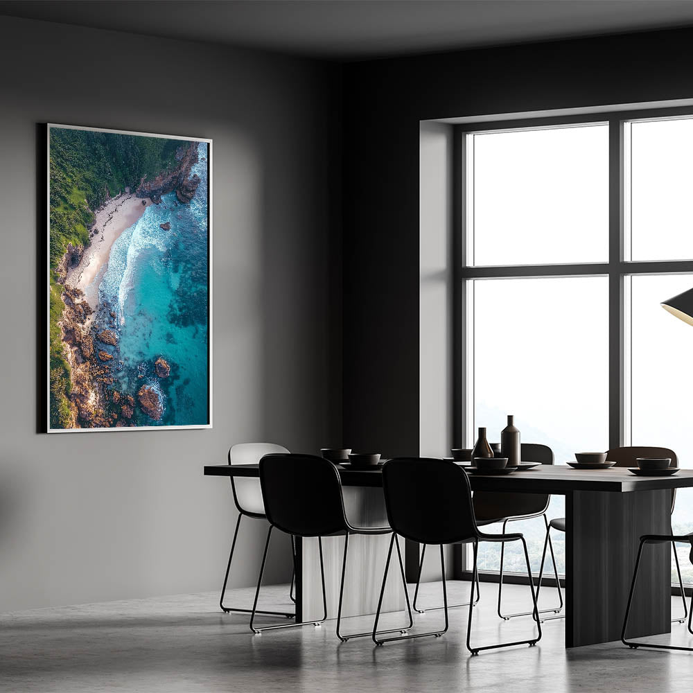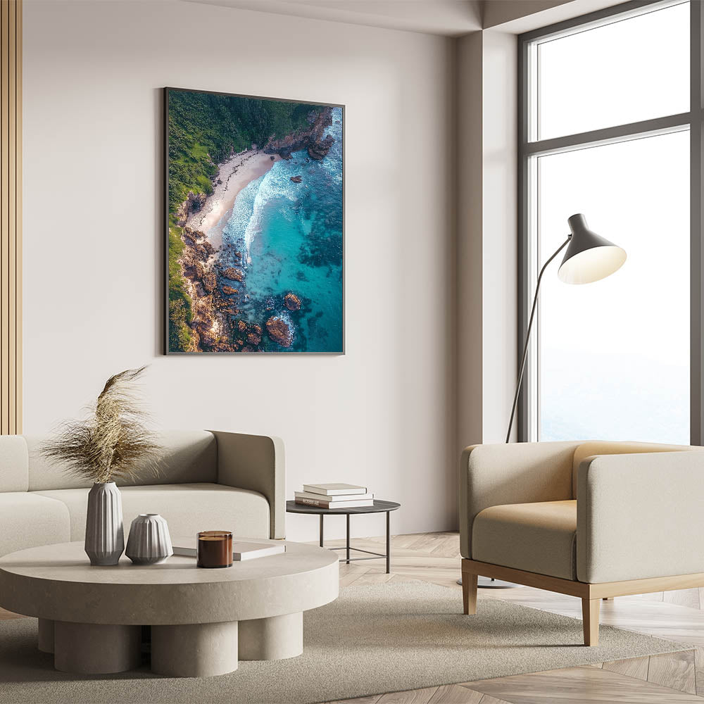 Scenic Cliffs Artwork - Aerial Ocean View and Sandy Shoreline Decor