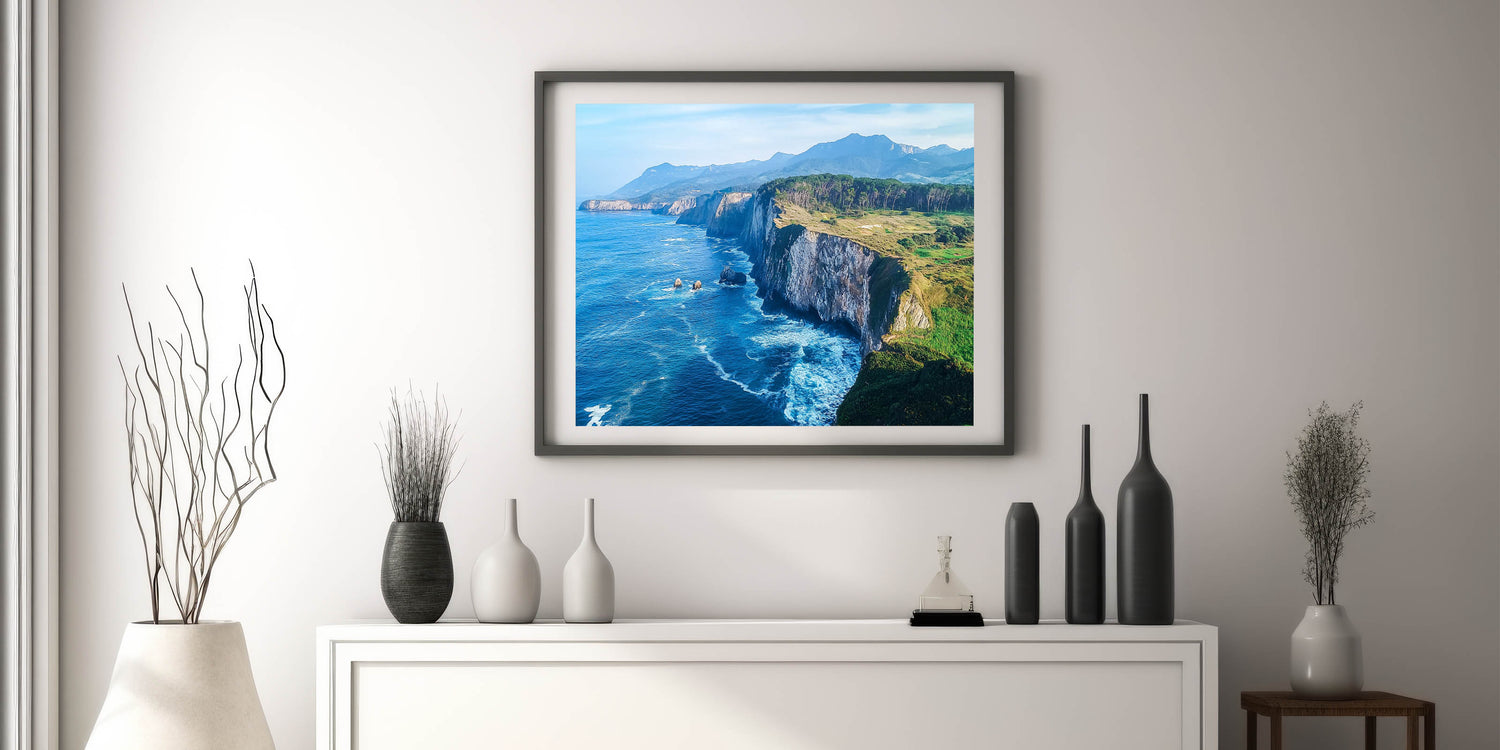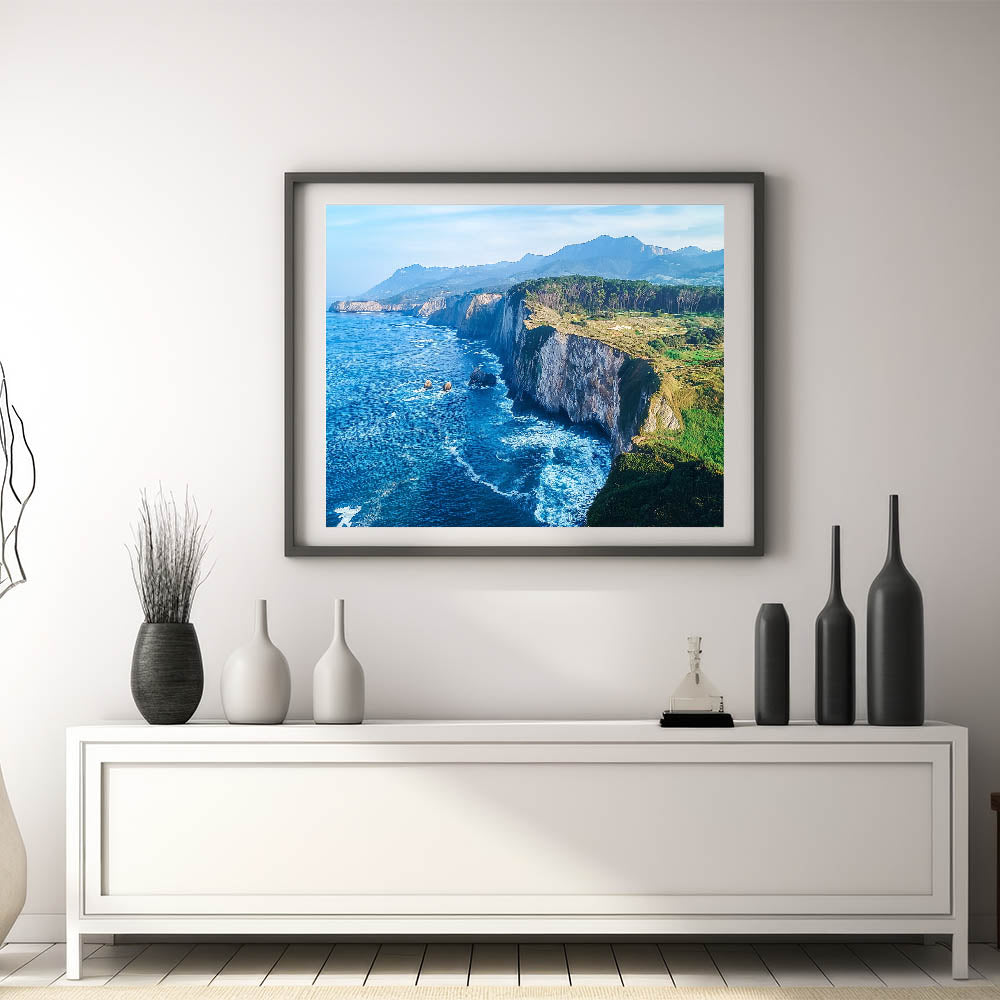 This beautiful cliffs art showcases the stunning balance of natural cliffs photography with the energetic beauty of ocean waves. Whether used as a centerpiece or a calming backdrop, this decorative cliffs print enhances any space with timeless charm and tranquility. Elevate your decor with this breathtaking scene today.
