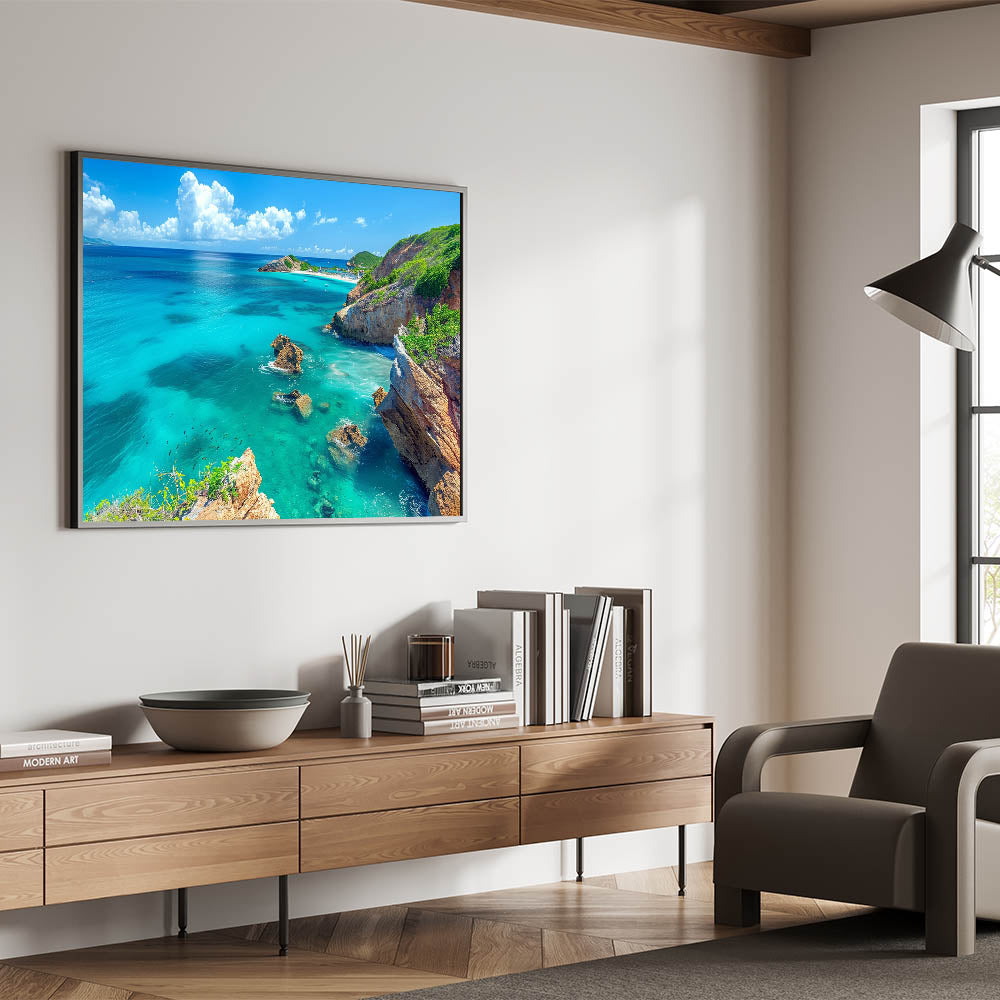 Transform your living space with this breathtaking Scenic Cliffs Wall Art. Capturing the serene beauty of natural cliffs overlooking crystal-clear waters, this artwork brings a sense of tranquility and wonder to any room. Ideal for nature lovers and those who appreciate stunning landscapes, this piece will elevate the aesthetic of your home or office.