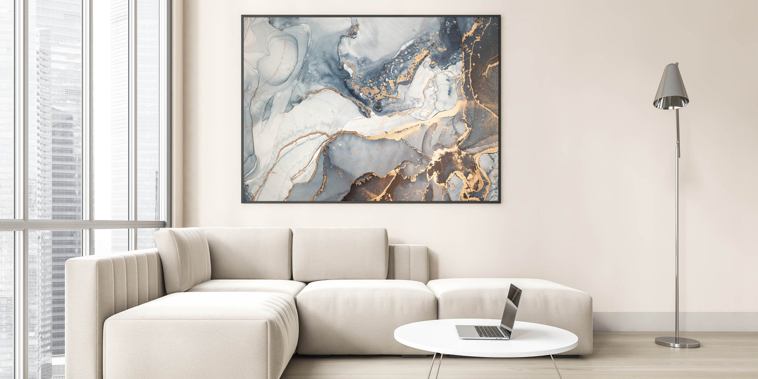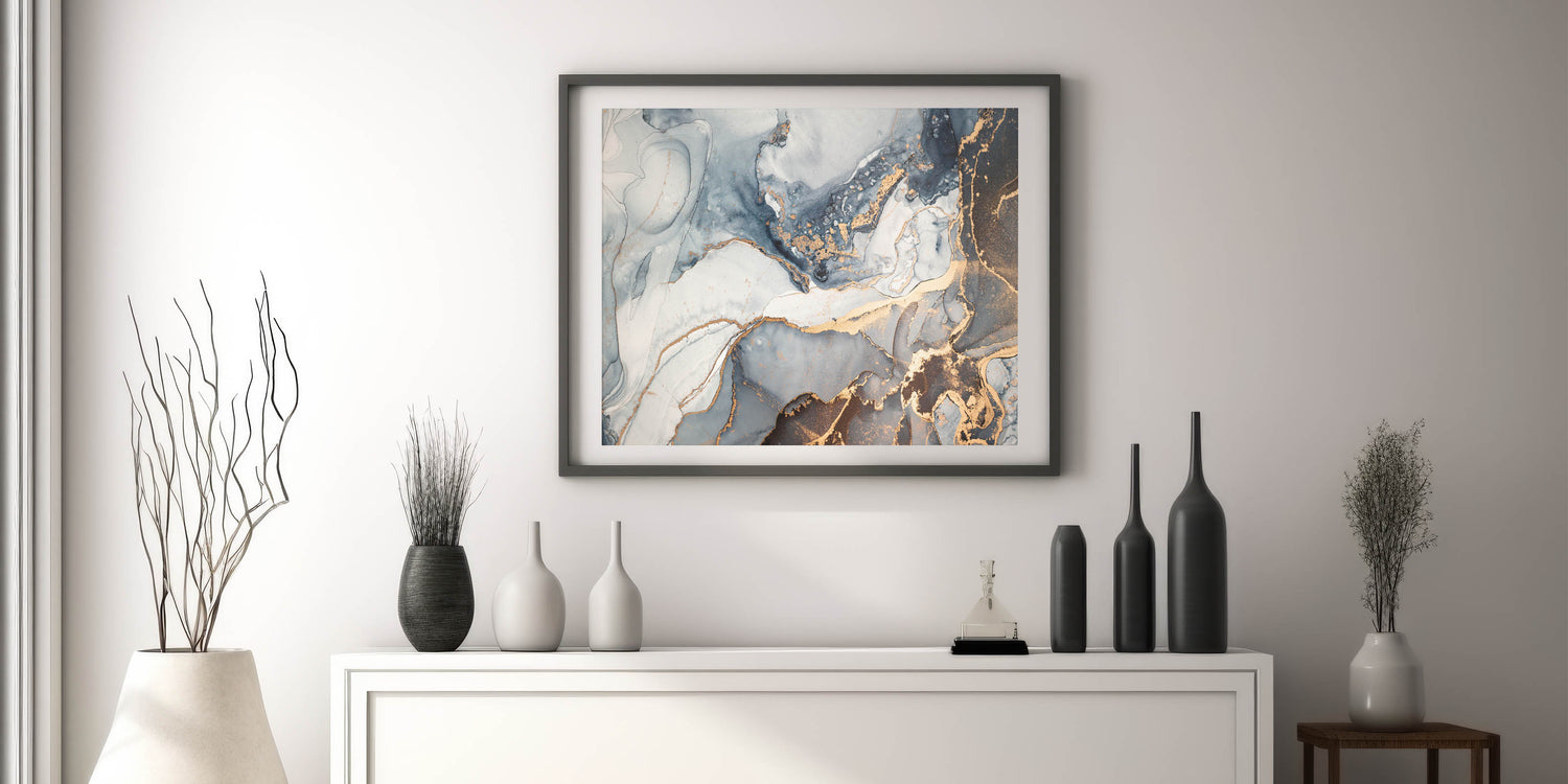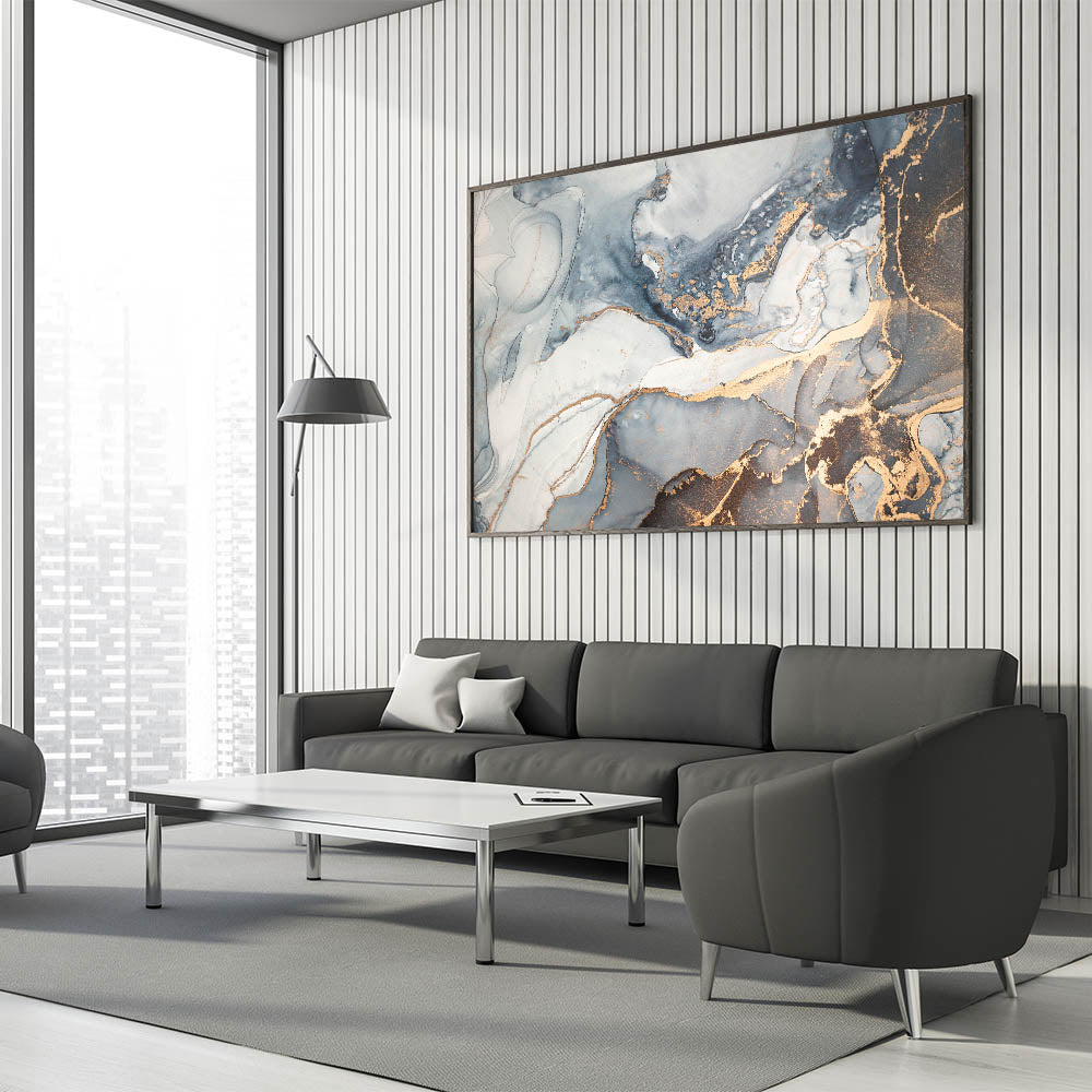 This contemporary luxury abstract artwork effortlessly blends into modern, upscale interiors, adding a touch of sophistication. Whether chosen as a framed acrylic glass print or a rolled canvas, this piece will transform your space into a statement of elegance and style.